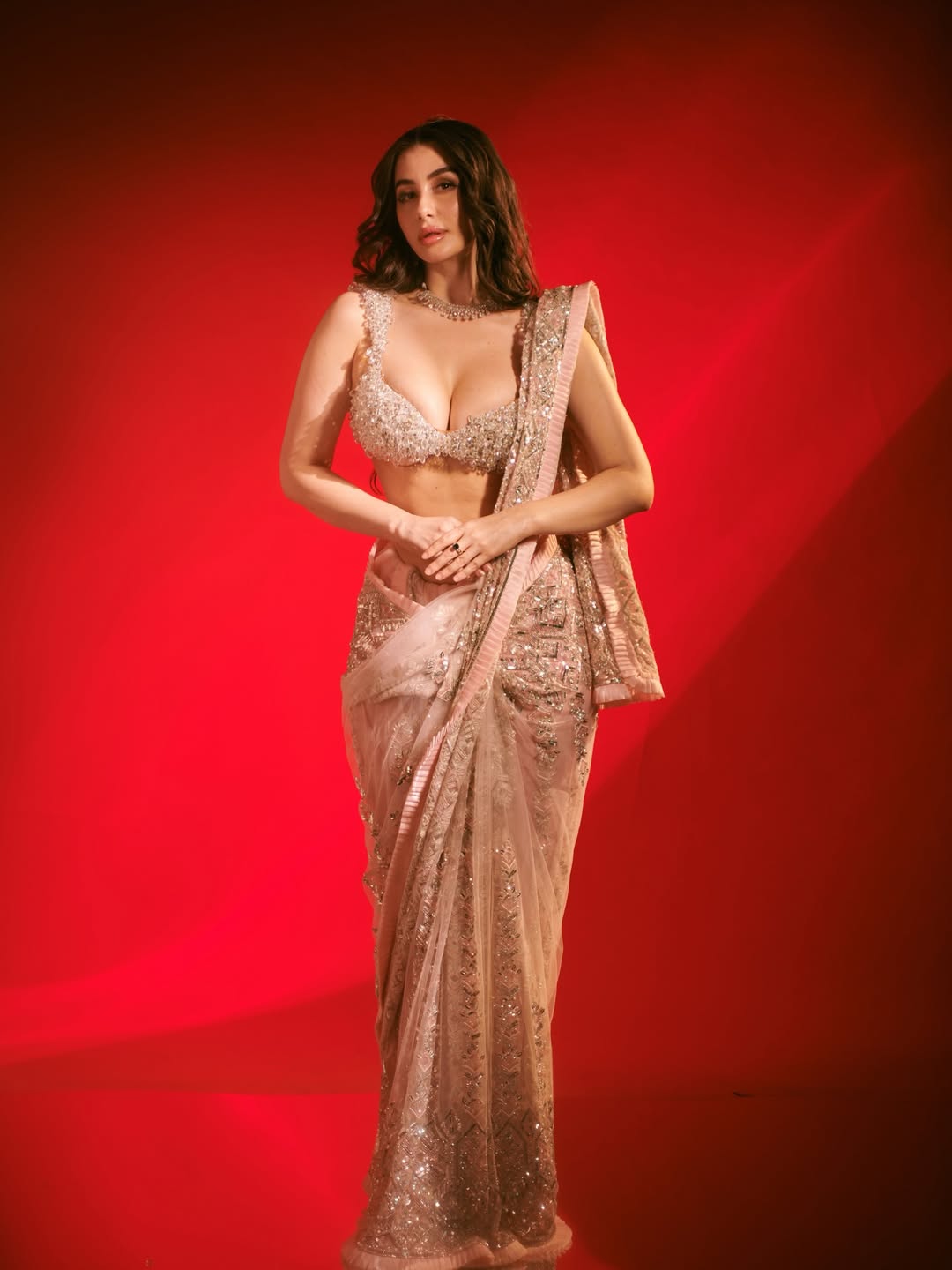 Actress Giorgia Andriani sets the frame ablaze with her latest breathtaking photoshoot, radiating elegance and glamour in a beautifully crafted saree. Draped in a shimmering pastel ensemble designed by the iconic @manishmalhotraworld, Giorgia exudes a blend of classic charm and modern allure. The intricate detailing of the outfit perfectly complements her poised silhouette, turning every frame into a work of art.