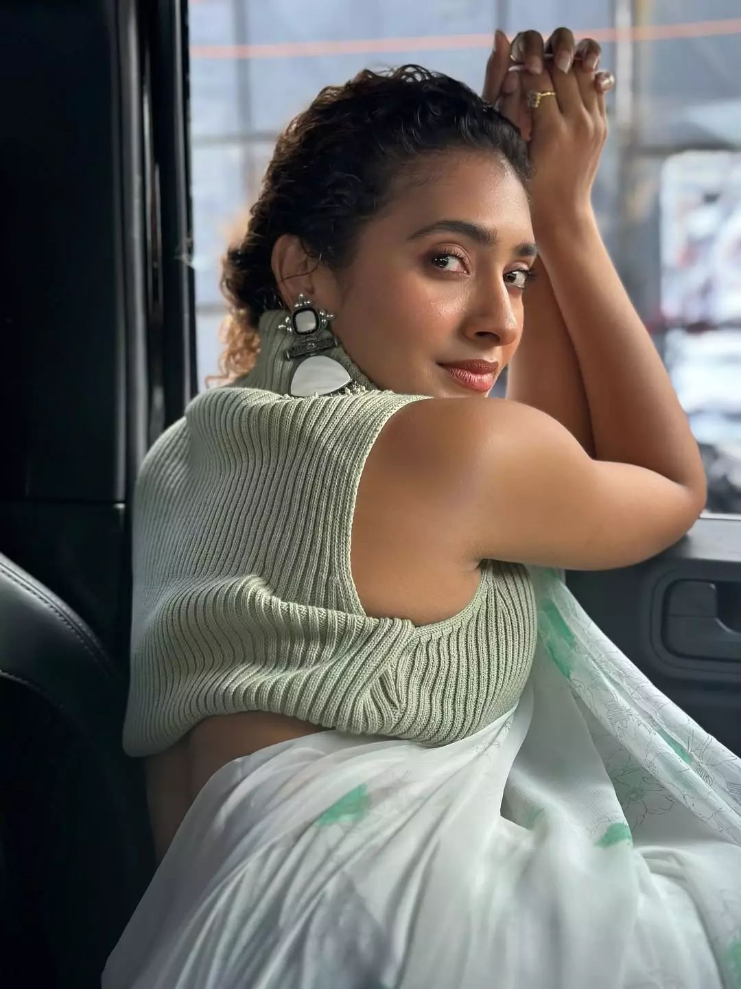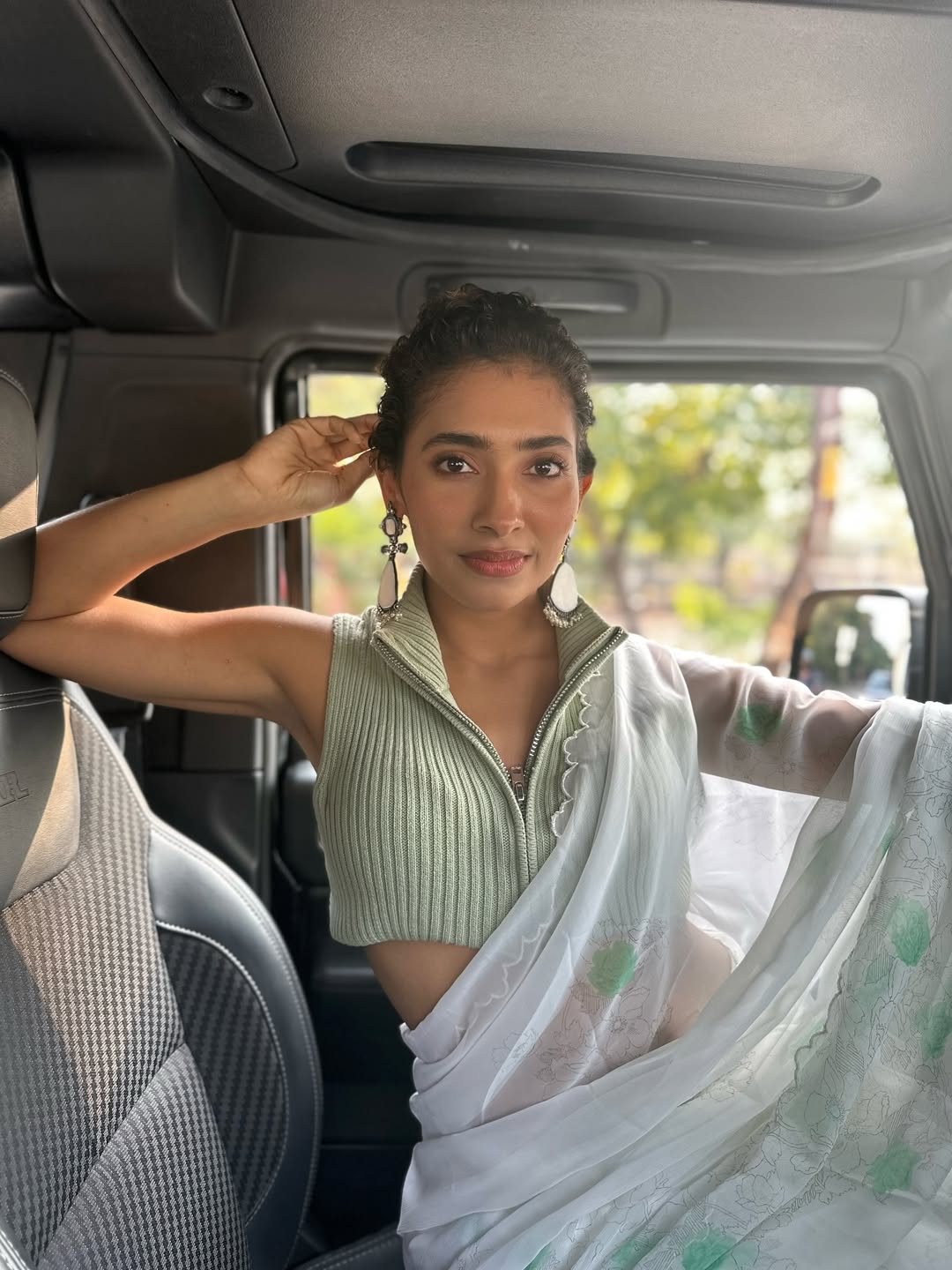 Actress Gnaneswari Kandregula recently shared a beautiful throwback picture on Instagram and the post has been receiving a lot of love from her followers. In the photo, she is seen smiling brightly wrapped in a soft white saree with light green prints.