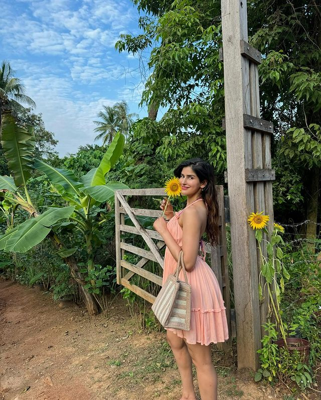 Her fresh, glowing look paired with minimal accessories and a soft smile adds the perfect balance of simplicity and allure. The stone,back setting contrasts beautifully with the pop of color, making each frame a treat for both fashion lovers and admirers of natural beauty.