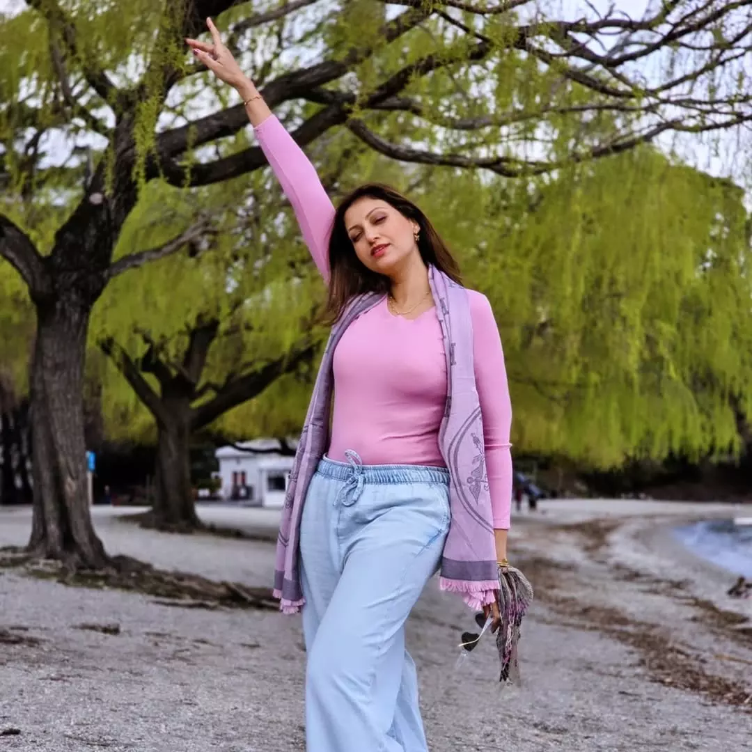 In this Queenstown backdrop, her radiant smile and confident aura reflect her journey always vibrant, always evolving. Whether it’s her impeccable fashion sense, her dazzling on-screen moves, or her connection with fans, Hamsa Nandini continues to inspire with her bold choices and unstoppable spirit.