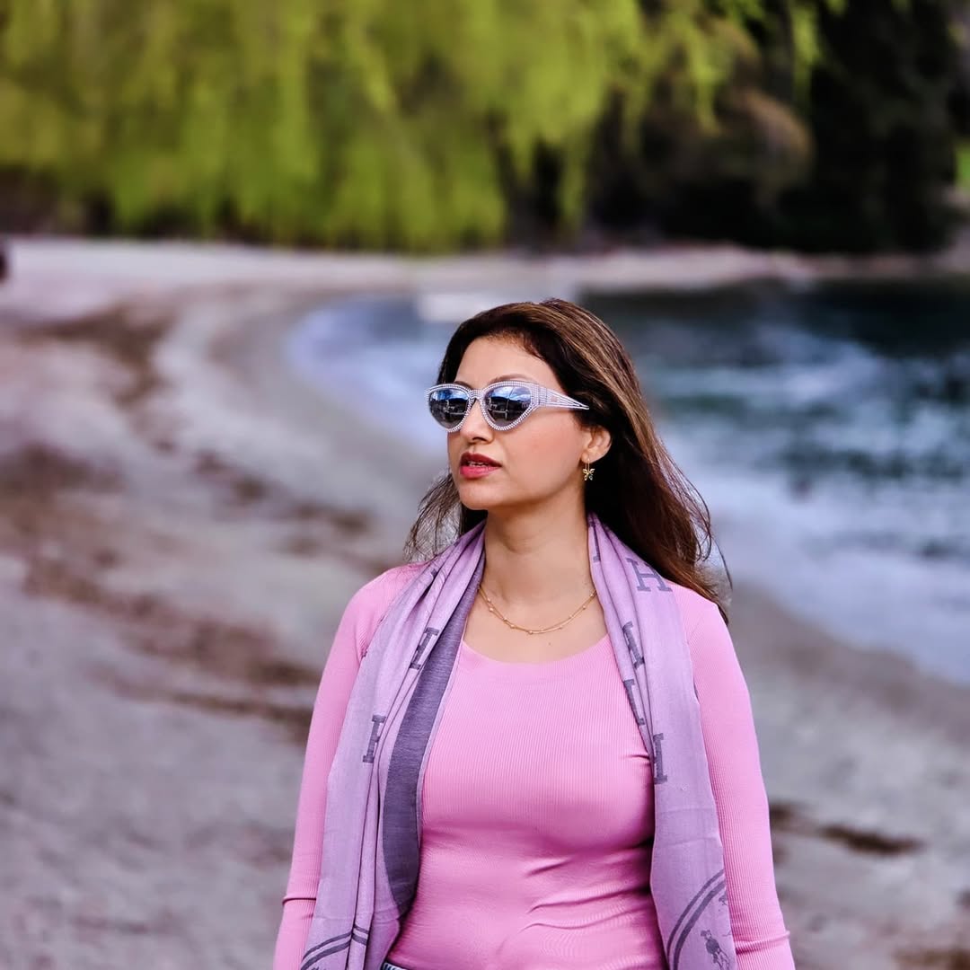 Caption: Paani bhi blush ho gaya, seeing me in gulabi rang! 🌊💖 Queenstown you beauty!😇