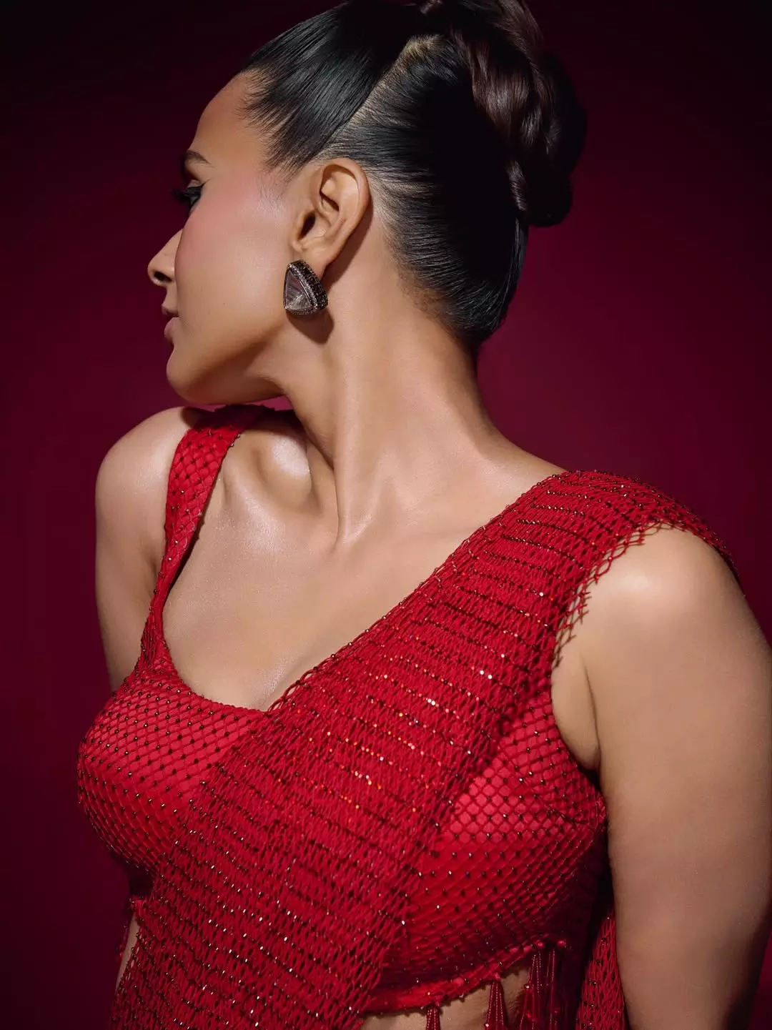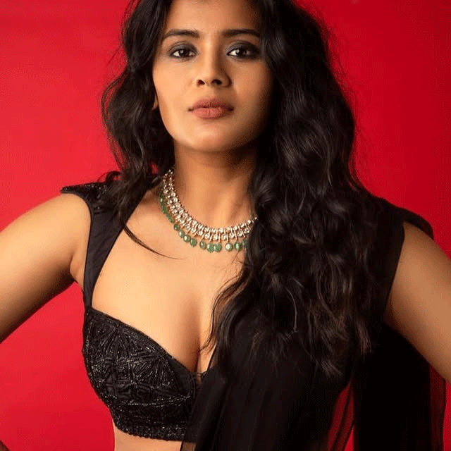 Here's a bold and intense new studio shot of Hebah Patel that showcases her sultry side and magnetic screen presence. The actress strikes a confident pose in a sleek black lace camisole, her tousled dark hair framing a striking gaze that commands attention. The dramatic lighting highlights her sharp features and effortless allure in this striking portrait.Finito!