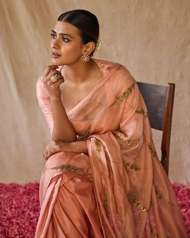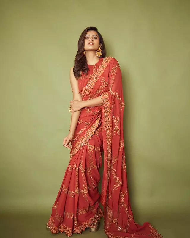 The outfit, designed by @baisegaba, showcases a perfect mix of modern flair and classic appeal, bringing out the actress's natural elegance. The accessories by @amrapalijewels are the perfect complement, adding a touch of sparkle and luxury to her look.