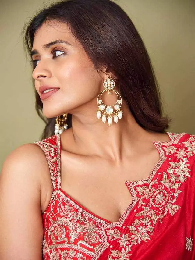 Hebah Patel known for her charming screen presence recently shared a picture of herself dressed in a traditional red saree on Instagram. In the image, Hebah looks absolutely graceful wearing a red saree with intricate golden embroidery. The dress exudes elegance and beauty and Hebah accessorized with large, statement earrings completing the look perfectly.