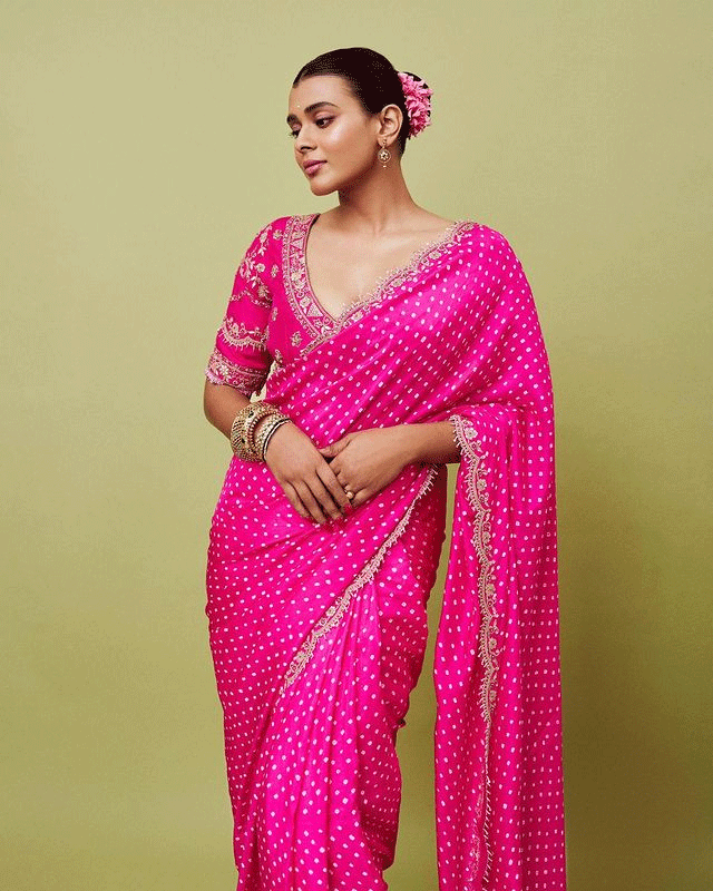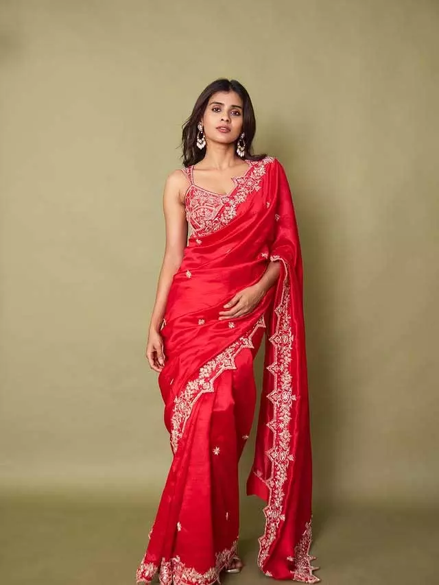 She shared the photo with the caption "Laaal," expressing her love for the rich color. The styling of the photo was done by @manogna_gollapudi, and Hebah credited @suvarnamandirbyrajsarepalli for the saree, @petalsbyswathi for the jewelry, and @akshay.rao.d for the photography. The combination of the fine detailing of the saree, paired with Hebah's natural grace, makes this post a standout on her Instagram feed.