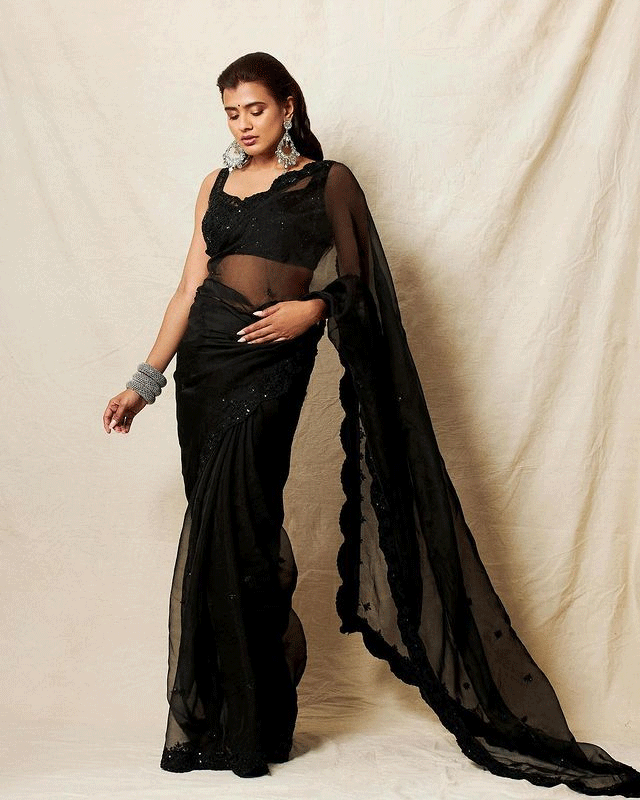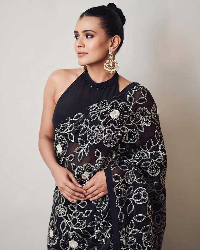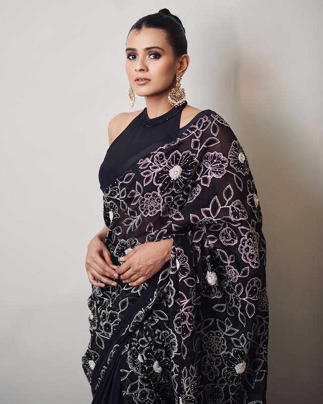 By: Tupaki Desk | 22 May 2025 3:25 PM ISTHebah Patel looks adorable in recent Instagram pics dressed in a black saree with intricate floral embroidery by @seeaash.in. Her look is elevated by statement earrings from @finesilverjewels-_rj and a chic hairstyle. Styled by @who-_wore-_what-_when and with makeup by @gulzarrwalaani, Hebah captioned the post, “Feeling like an Apsara for Zee Apsara!” Her graceful posture and serene expression match the divine theme, while the artistic photograph by @akshay.rao.damera captures her ethereal beauty.