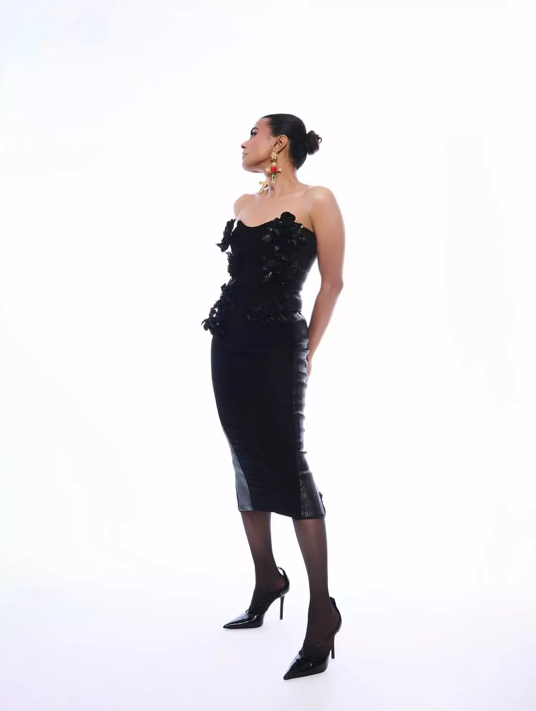 Hebah Patel shared new pictures on Instagram from SIIMA Day 1. Her caption read, “SIIMA day 1 @sameermadan-_official Jewellery @radhikaagrawalstudio Hair and makeup @blendingiscardio Styling @who-_wore-_what-_when Photography @anurag-_kabburphotography.” She looked confident in her black dress. Her hair was tied neatly in a bun. Her earrings were large and eye-catching. Her styling gave her a strong presence.