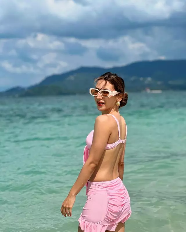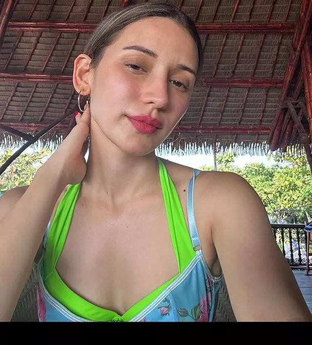 Her halter-style bikini top, adorned with delicate floral patterns, strikes the perfect balance between elegance and playful summer vibes. Minimal accessories and natural makeup enhance the fresh, relaxed mood, making her Sunday swim look both aspirational and approachable. With the caption “Swimming on Sundays,” Helii subtly highlights the importance of self-care and carving out time to unwind, even amid a busy lifestyle.