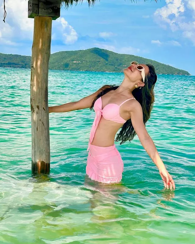 Helii Daruwala recently offered a refreshing peek into her Sunday routine, perfectly capturing the relaxed energy of early-year mornings. In a striking blue-and-white patterned bikini, she radiates confidence and effortless style as she prepares for a swim. Shot in a luxurious, marble-accented bathroom, the photo balances poise with casual charm, showing how everyday moments can feel both glamorous and personal.