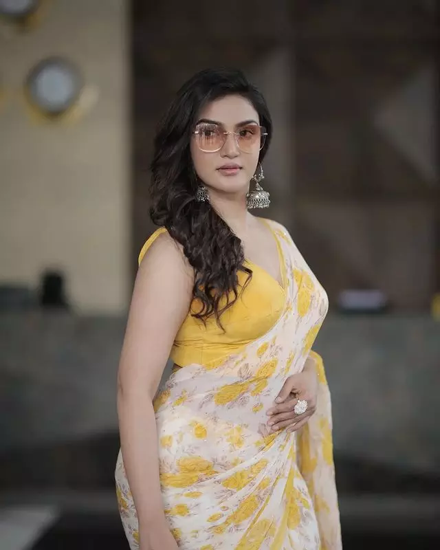 Honey Rose Radiates Elegance in Navy Blue Saree, Fans Adore Her Grace