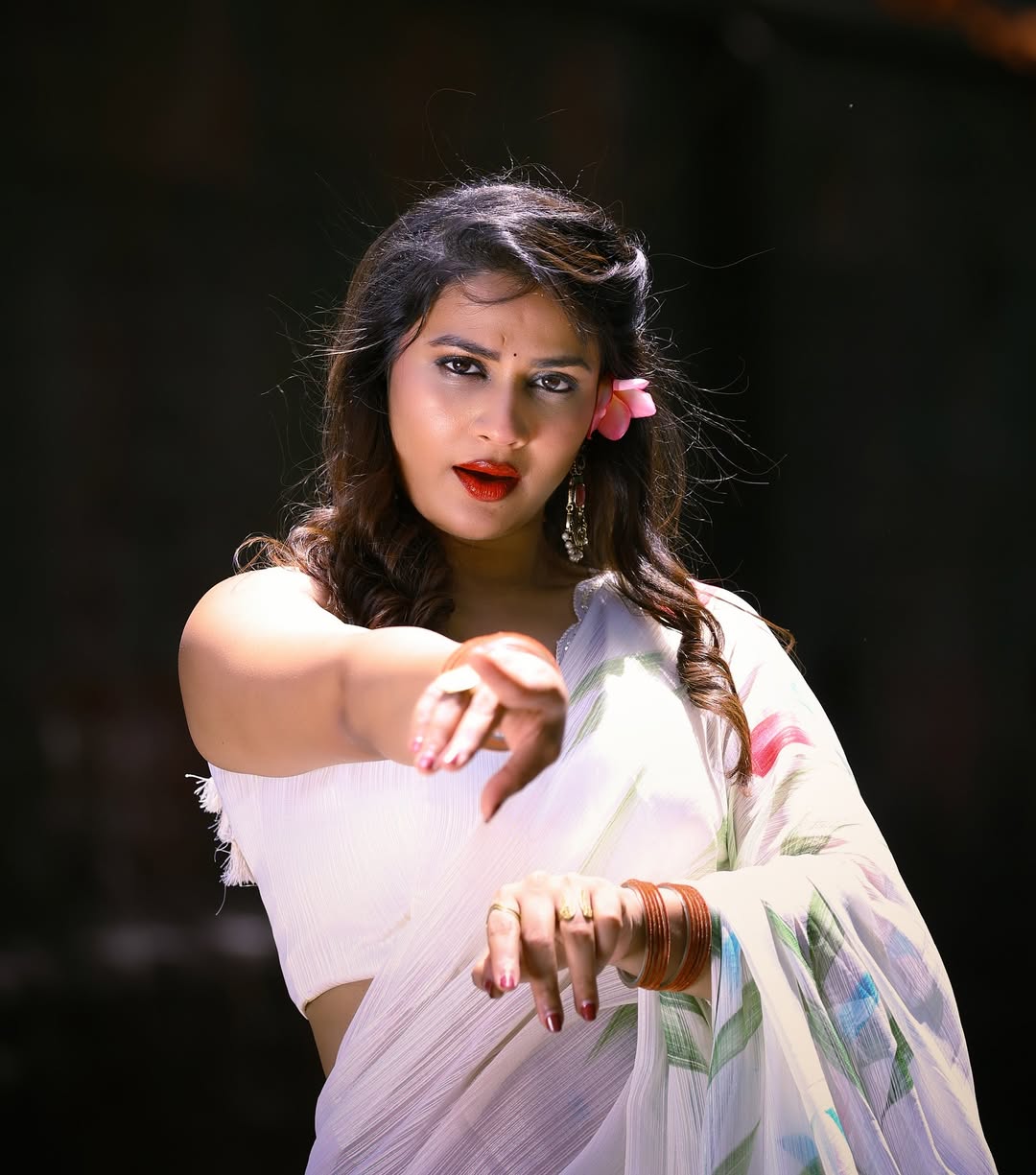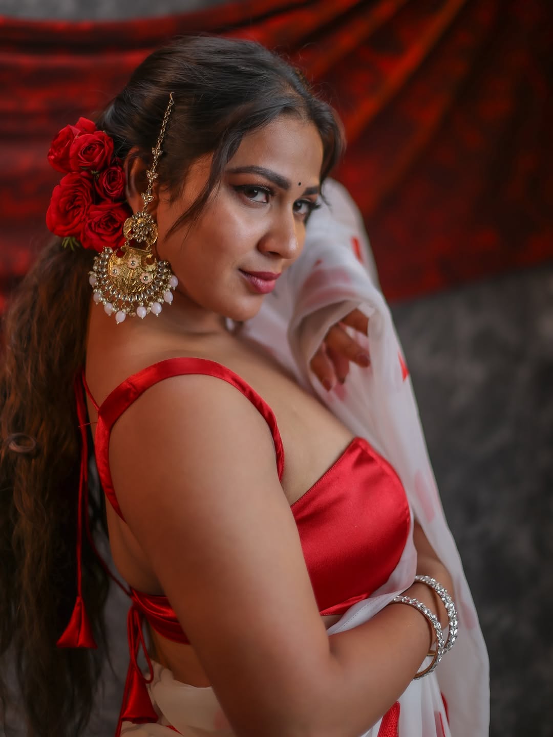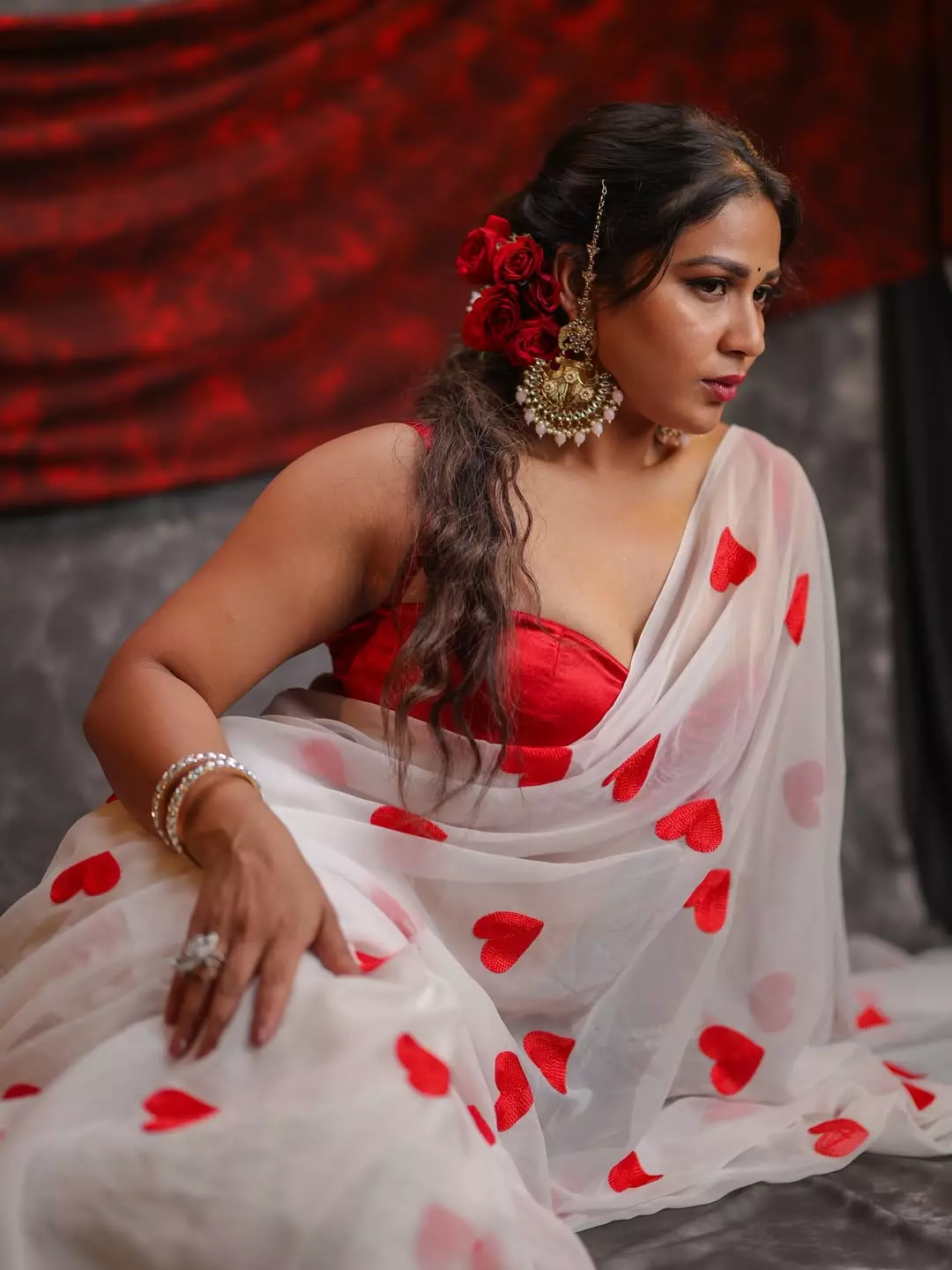 By: Tupaki Desk | 19 July 2025 10:37 AM ISTInaya Sultana is known for her captivating presence on screen. Recently an actress shared a photo getting all the attention. In this Instagram pic she is seen in a white saree adorned with red heart patterns.