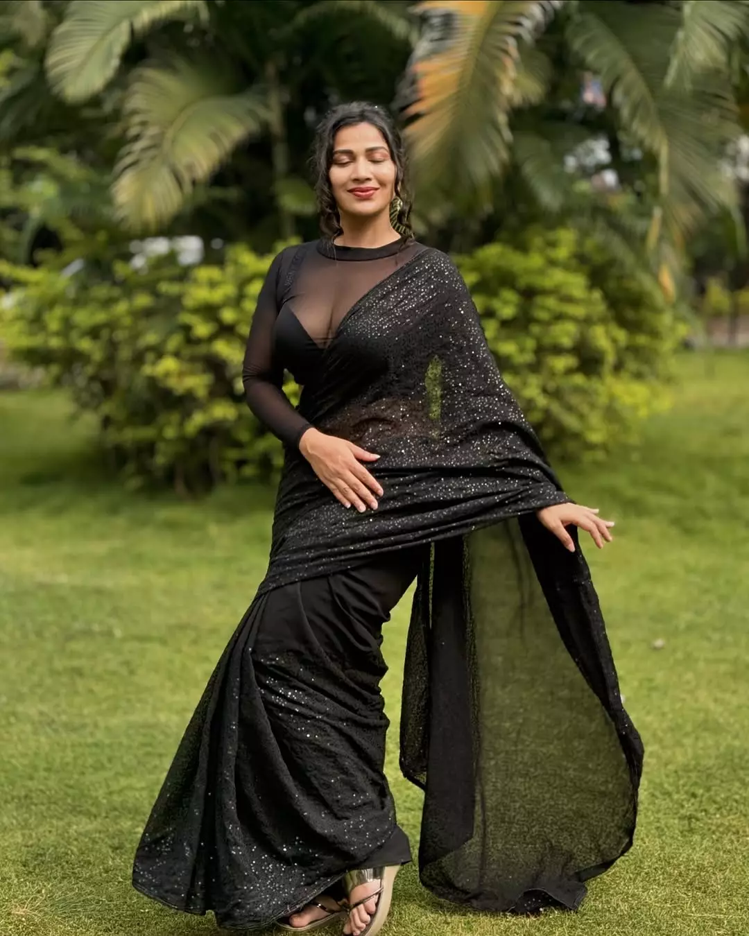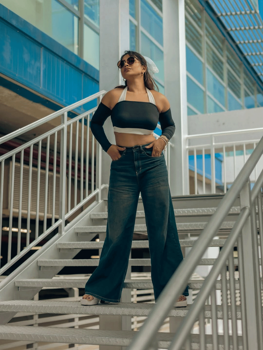 By: Tupaki Desk | 16 July 2025 7:01 PM ISTInaya Sulthana shared a stylish new photo on Instagram that caught everyone's attention. She is seen wearing dark wide-leg denim jeans and a trendy black crop top with sleeves and round sunglasses. Inaya gave major early 2000s fashion energy. Her caption read, “Chic style 💃 with a 🙈 Y2K vibe.”