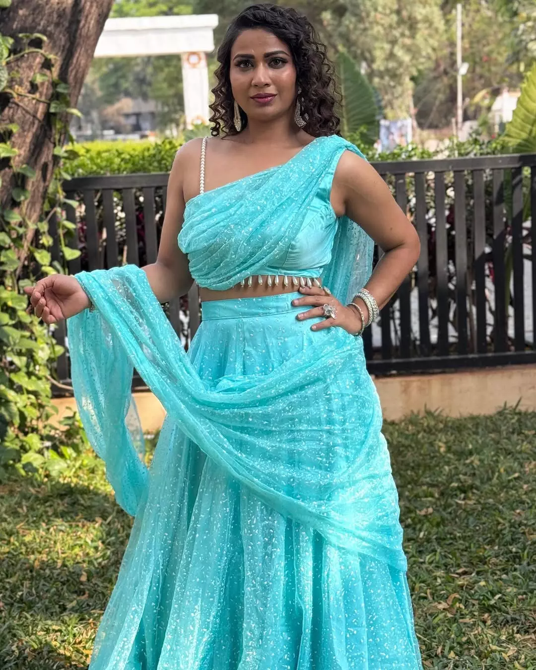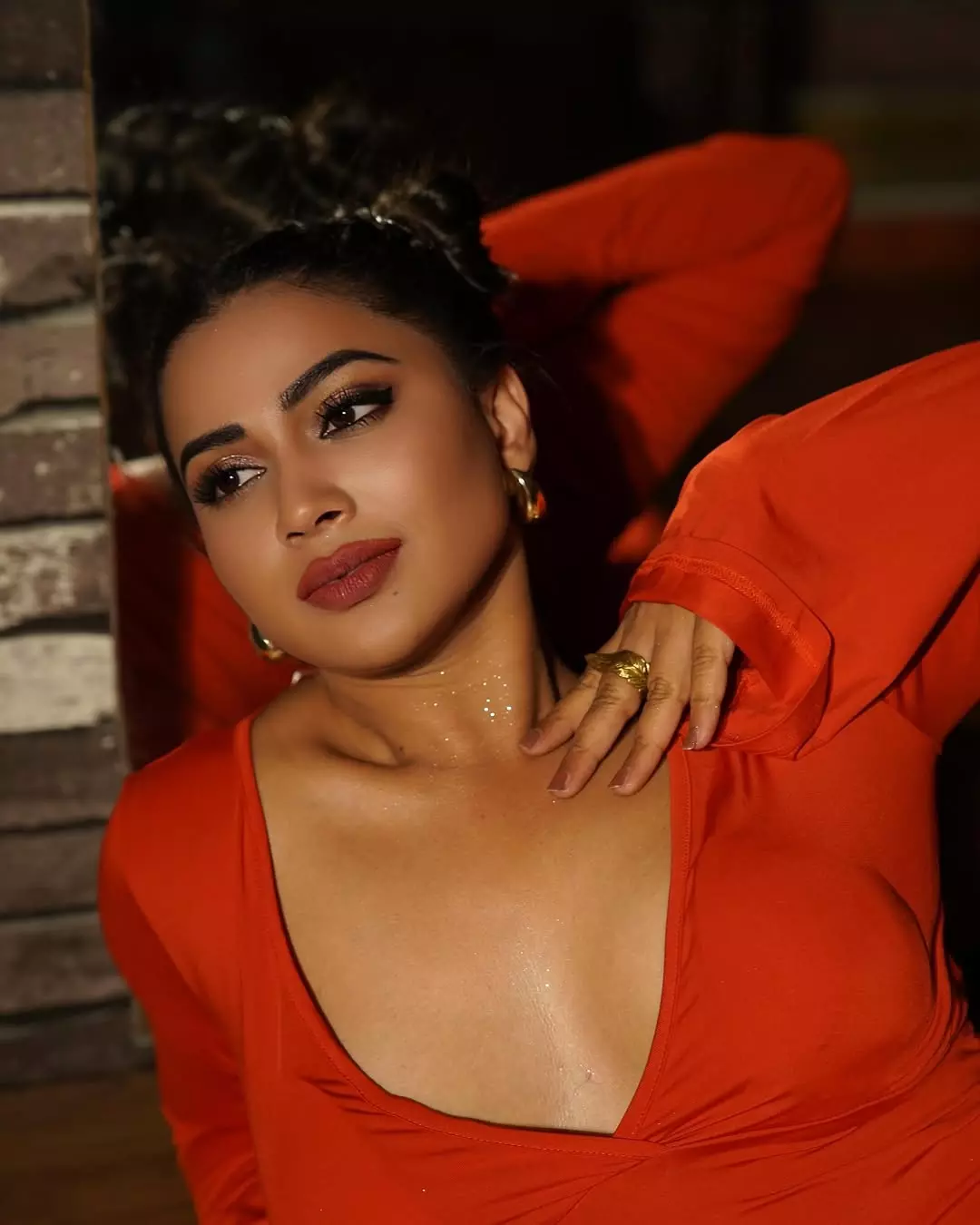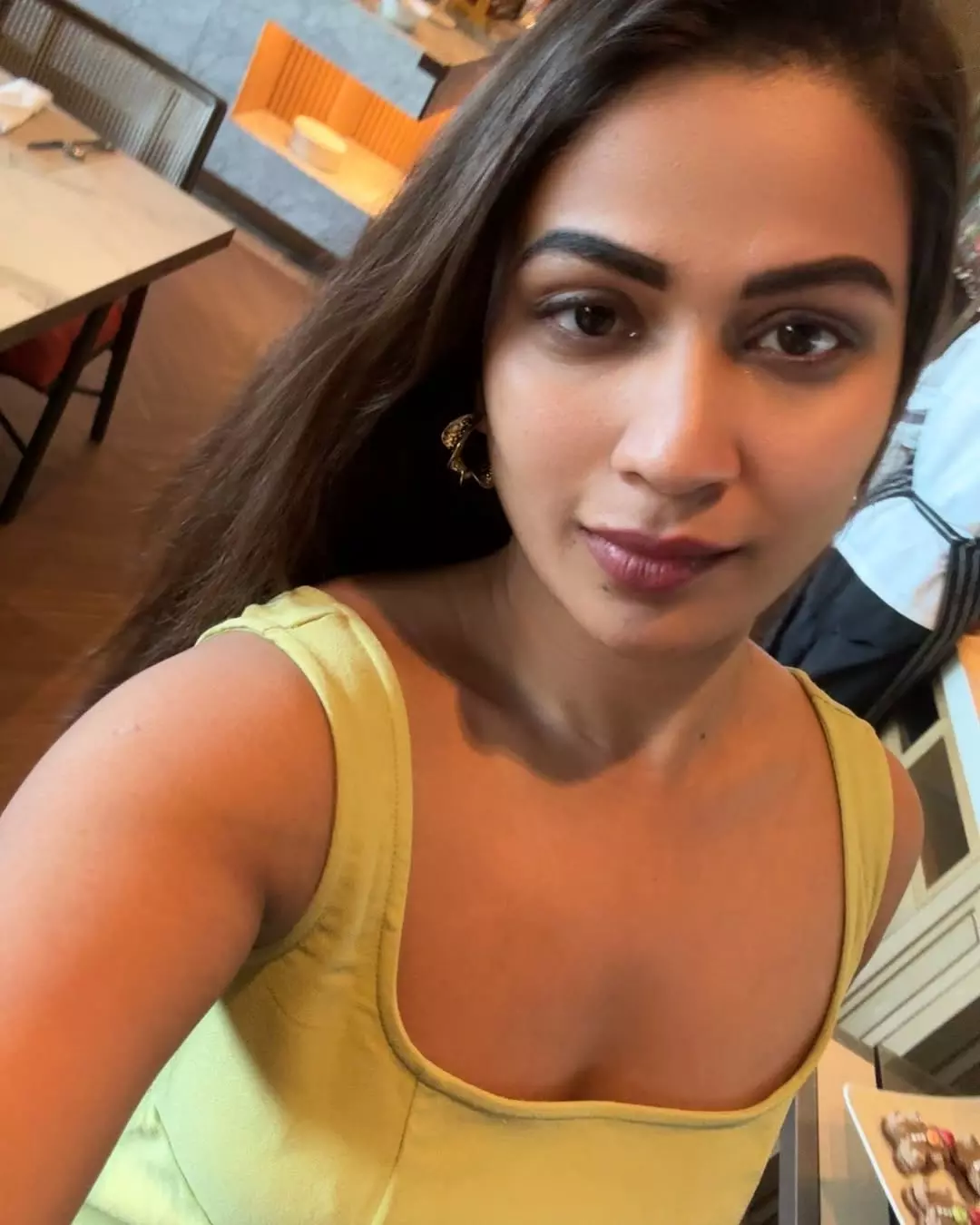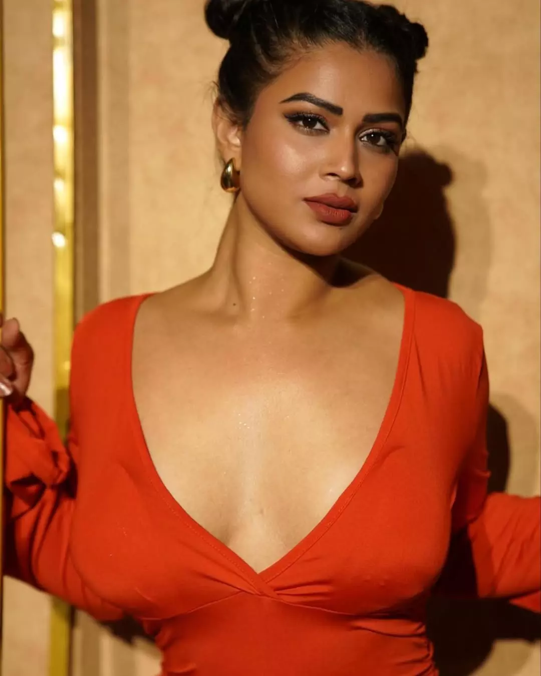 Inaya sulthana recently shared a picture in a orange beautifully embroidered dress.