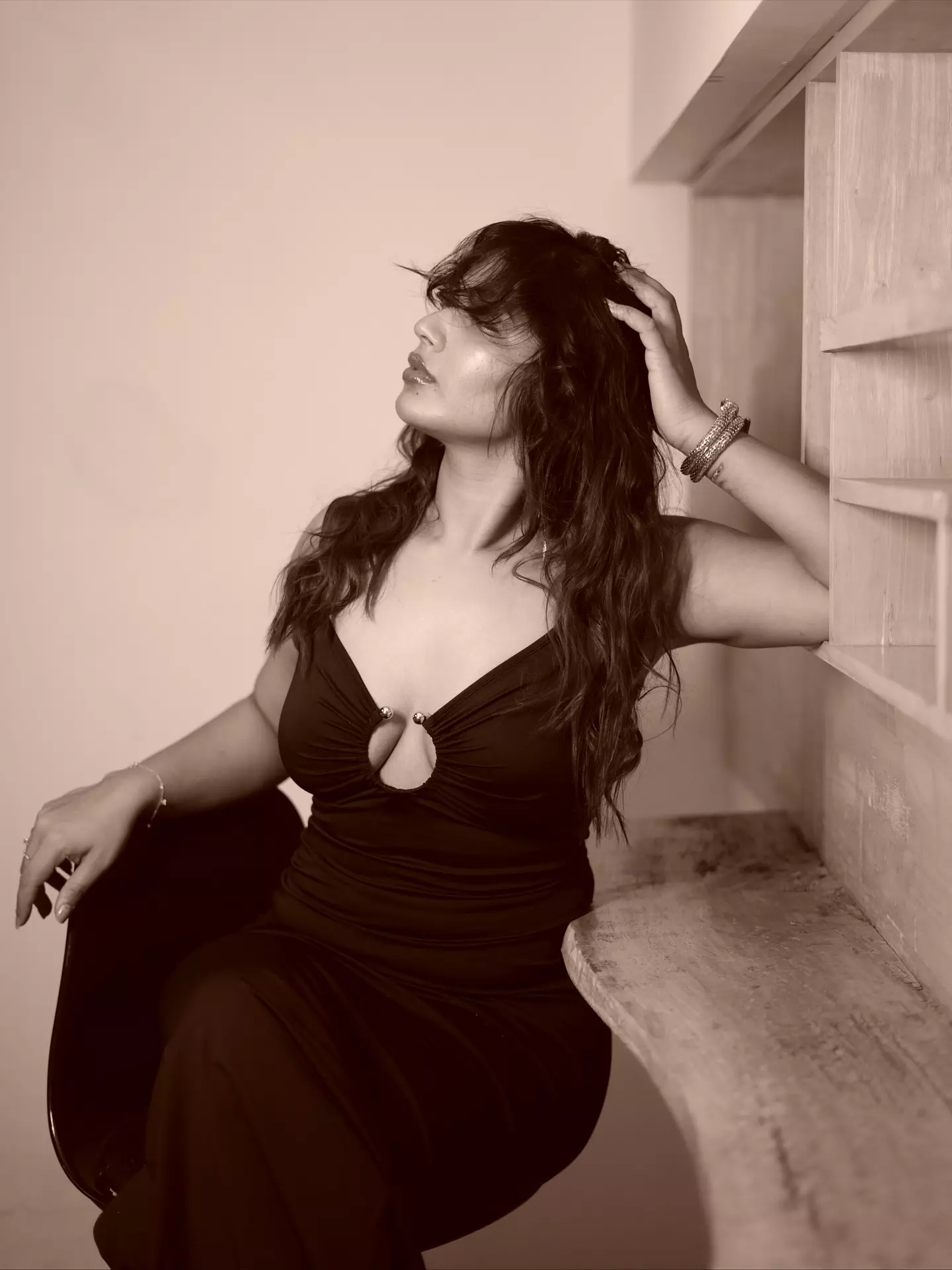 In the monochrome picture, Inaya wore a sleek black dress with a bold neckline. Her wavy hair and soft makeup highlighted her natural beauty.