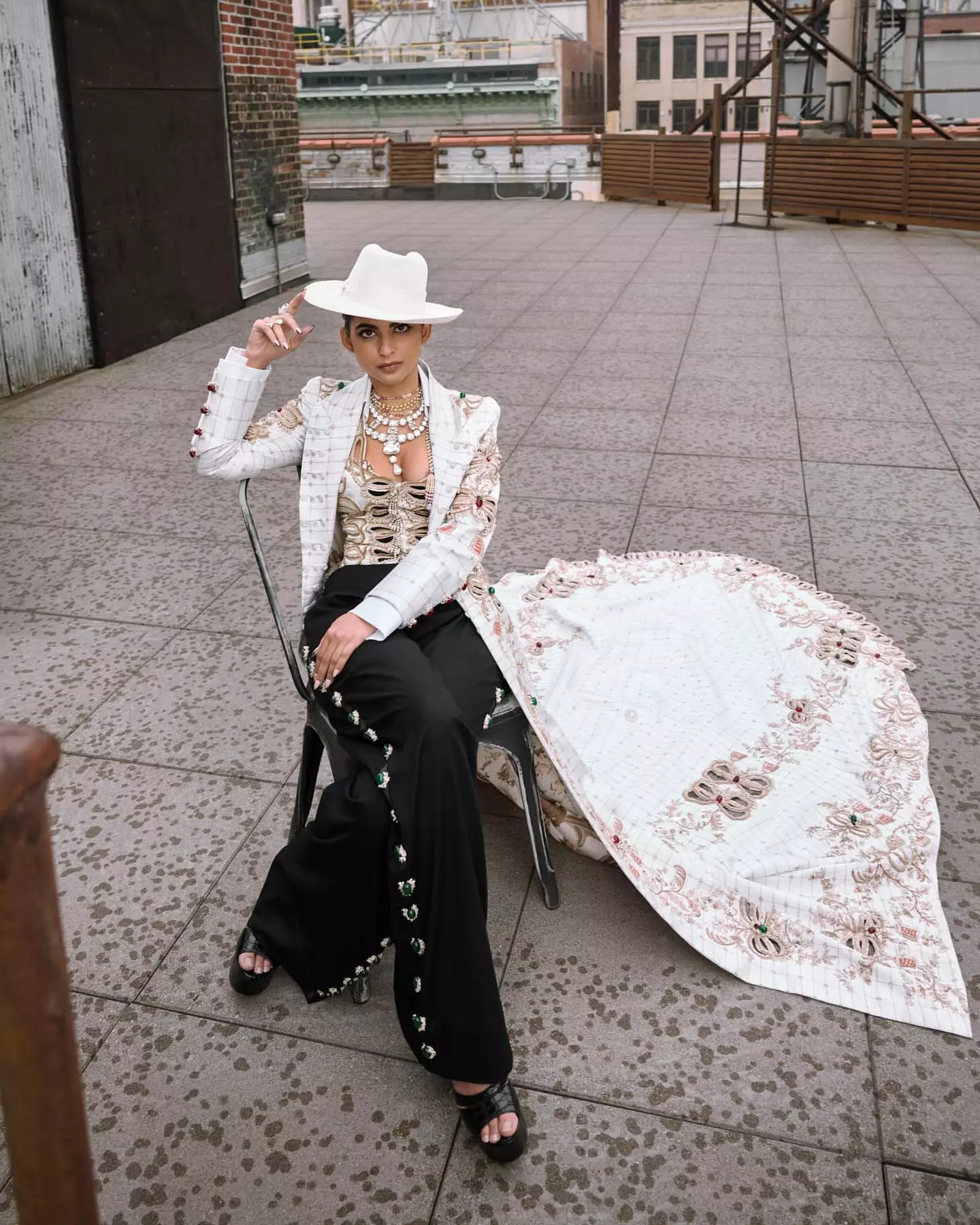Her dress featured a white embroidered corset decorated with pearls and golden thread. She paired it with black tailored trousers and a dramatic floor length cape. The cape had a handwoven Benarasi train and intricate Zardozi embroidery. This unique combination of elements reflected the theme of this year’s Met Gala—“Superfine: Tailoring Black Style.” It celebrated elegance inspired by the Black dandy style, and the dress code was “Tailored for You.”