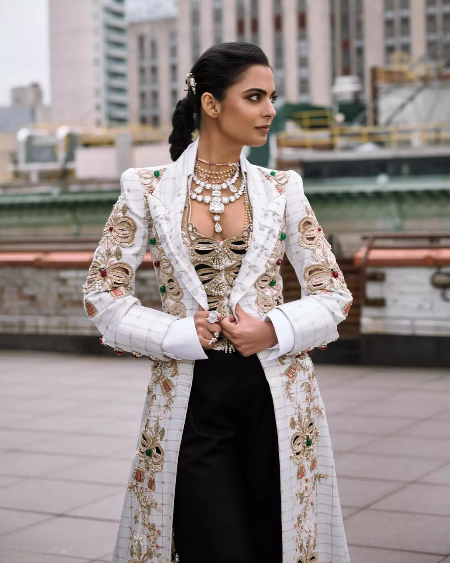 Styled by Anaita Shroff Adajania, Isha's look stood out not just for the outfit but also for the rich accessories. She wore a vintage Cartier diamond necklace from her personal collection. The necklace originally belonged to the Maharaja of Nawanagar and featured 89 stones weighing over 480 carats. One of the main highlights was an 80.73-carat cushion-cut diamond.