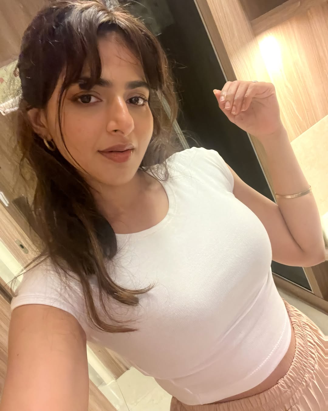 Iswarya Menon shared a new post on Instagram. She looked fresh and cheerful in the picture as she wore a plain white top with a soft beige skirt. Her hair was styled with bangs that framed her face. The natural look suited her well. A small smile on her face added charm.