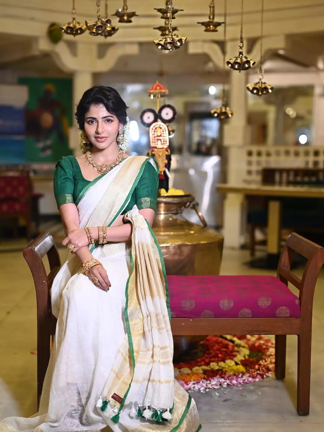 The photoshoot took place at @saverahotelchn with pictures clicked by @praveentyagarajan. The look was styled by @purani.24, with a traditional sari from @hafsaaddotcom and jewellery from @fineshinejewels. Her makeup was done by @keerthana-_makeup-_and-_hair, while @priyamakeover-_artist styled her hair. The coordination was handled by @jiyamakeupartistry. Iswarya also thanked @roopa-_radhakrishnan-_ for organizing the shoot.