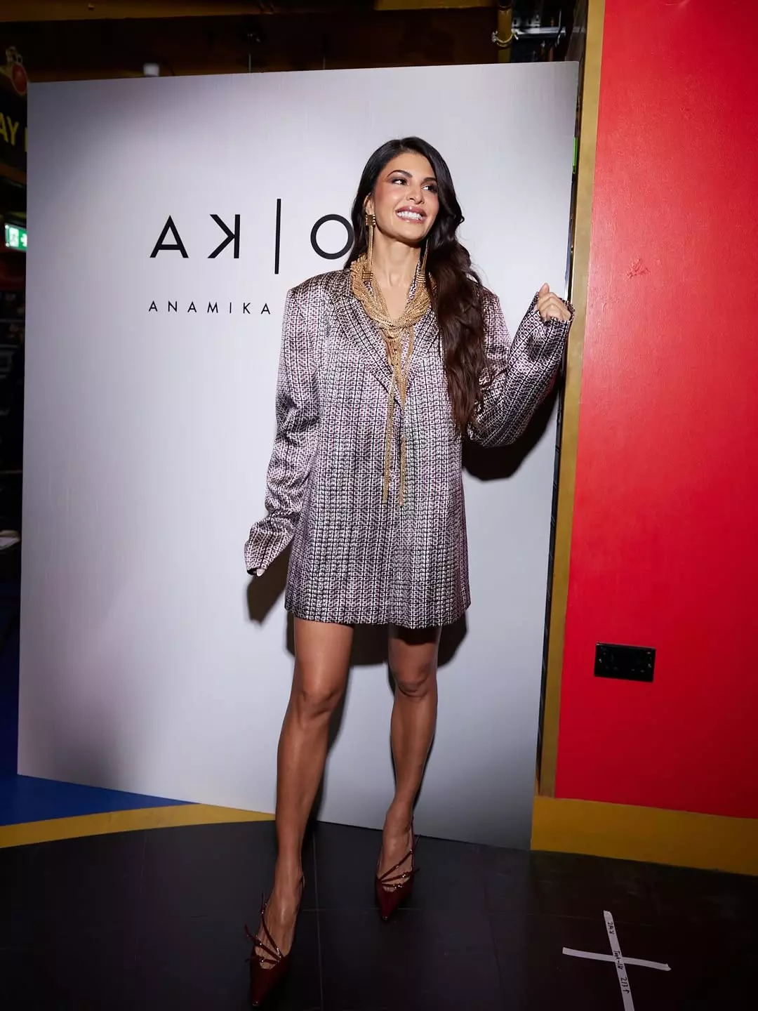 The actress is currently in London and has been wearing designer wear collection which she is loving immensely. Jacqueline participated in the AAK | OK Anamika Khanna's fashion show in London. She wore their collection for this show, The dress she wore looks like a coat but a single piece which brought elegance to her presence.