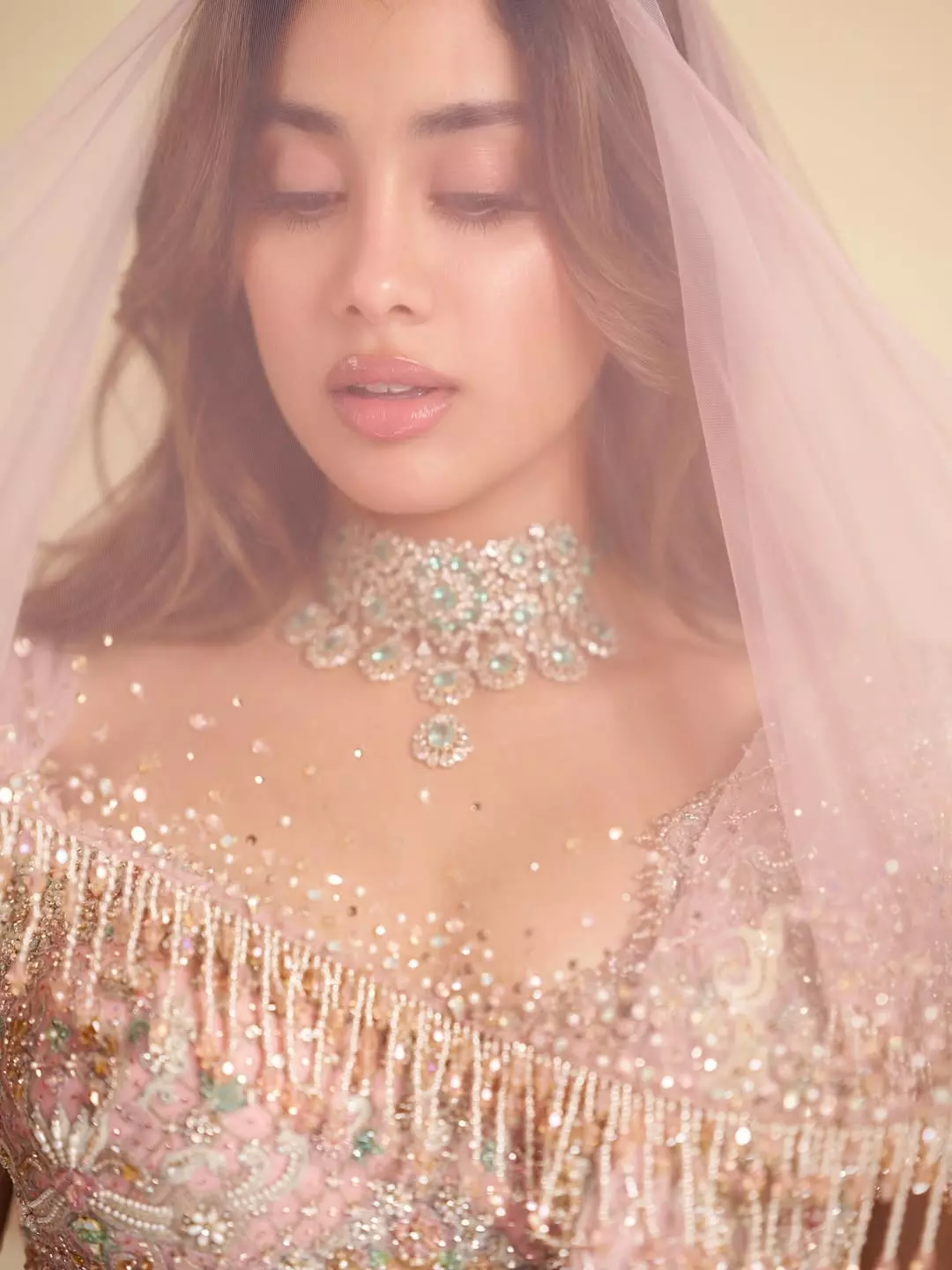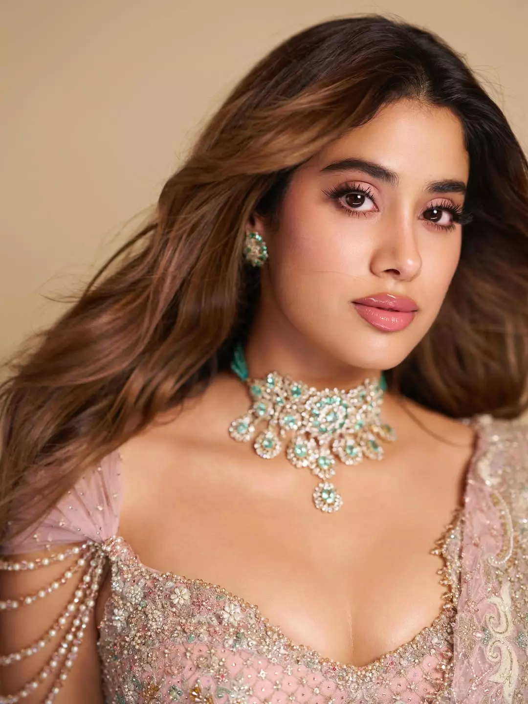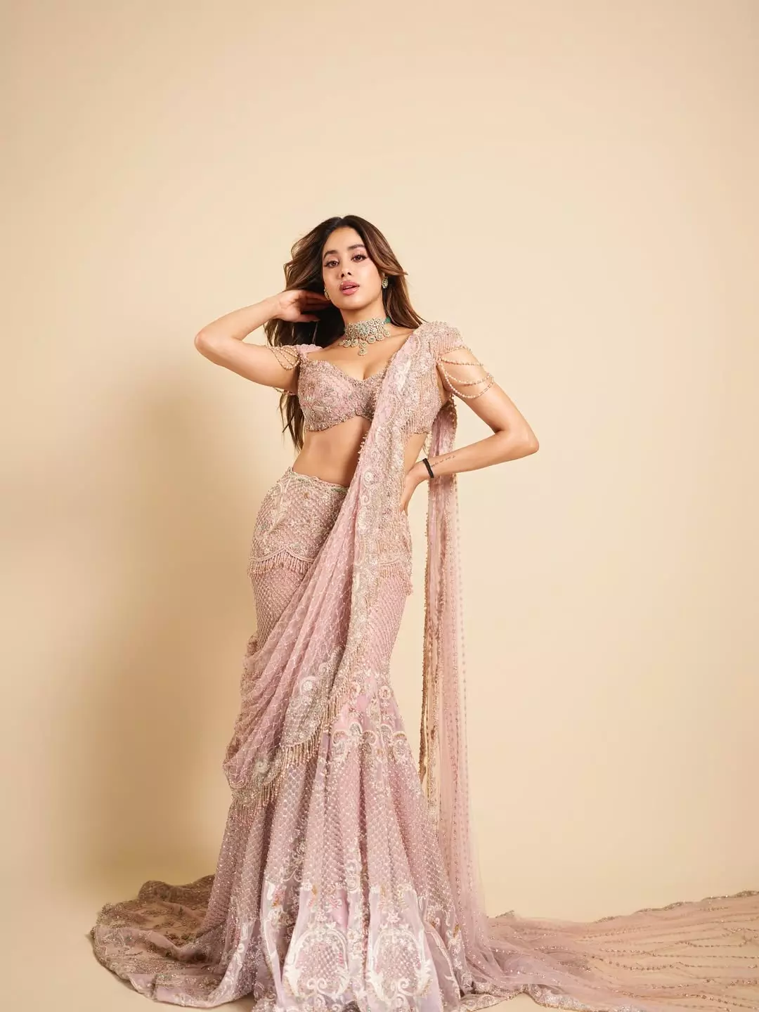 The photo was taken during a fashion show. Janhvi wore a choker and matching jewelry and look was simple yet royal.