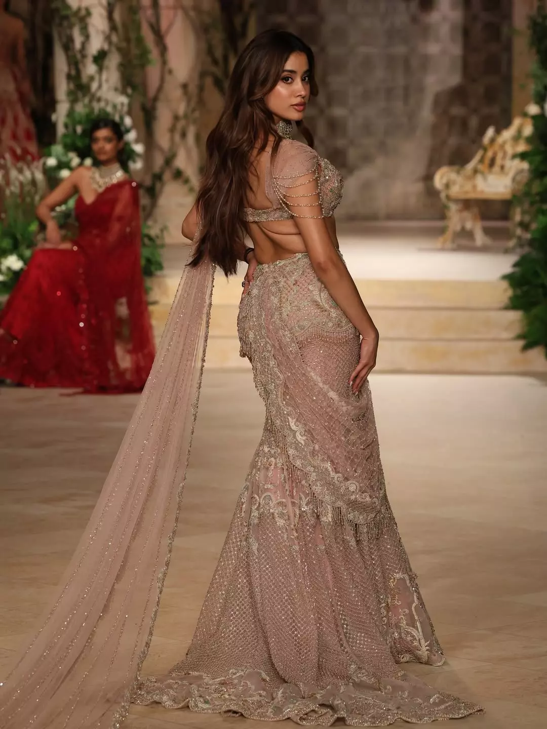 Janhvi walked for Jayanti Reddy’s label. The event celebrated traditional fashion. Other models were seen in red and similar tones but Janhvi’s pink look stood out.