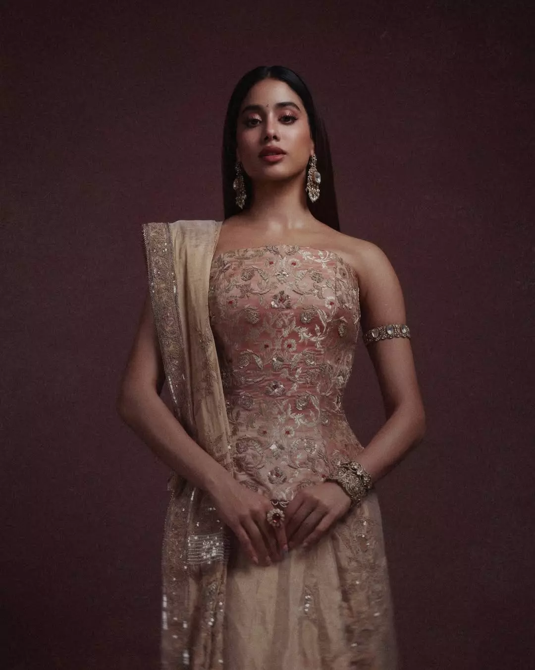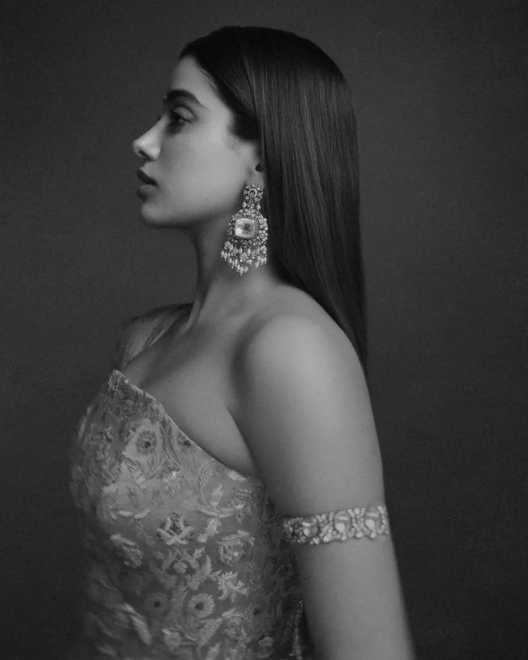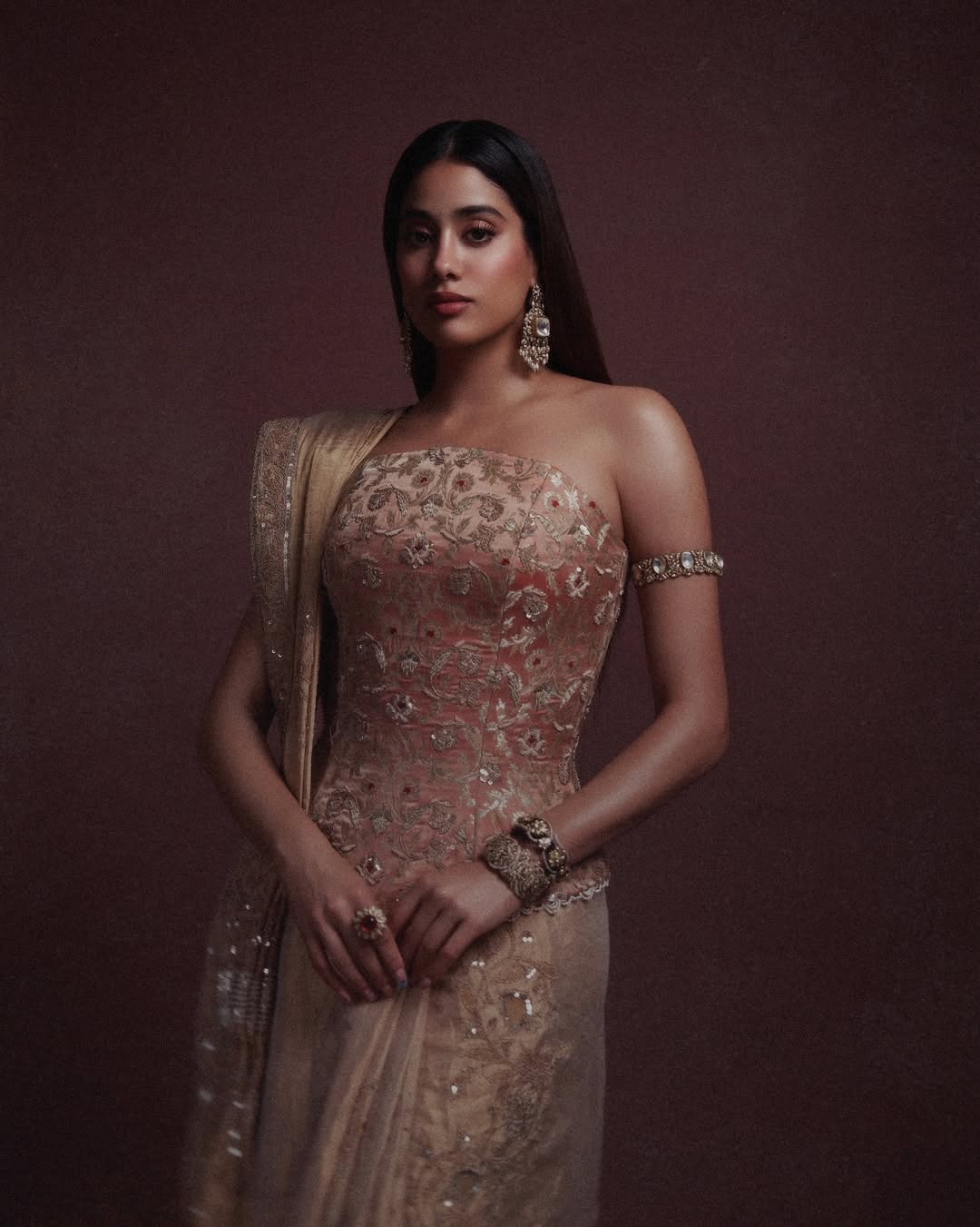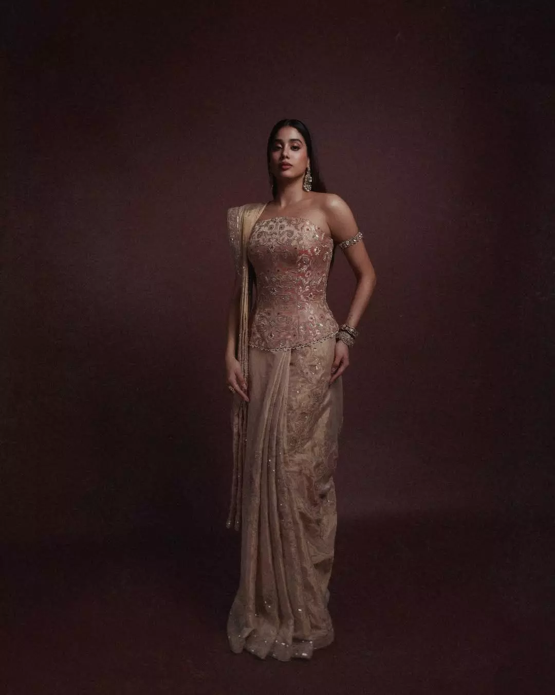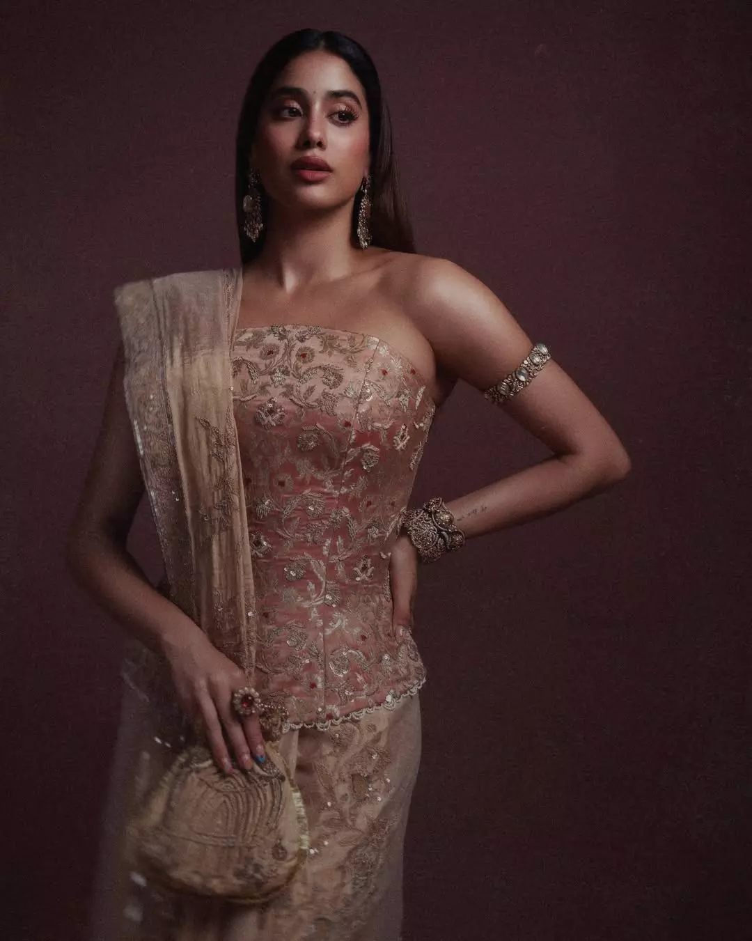 By: Priya Chowdhary Nuthalapti | 29 Sept 2025 1:37 PM ISTJanhvi Kapoor shared her look from an event at NMACC. She wore an unreleased couture by Anamika Khanna. Her caption mentioned the details of her attire. She wore a handwoven Benarasi brocade corset with gold Zardosi embroidery. It was paired with a vintage tissue saree that had dori embroidery. She completed her look with uncut diamonds and a rubellite ring from Birdhichand. She carried a vintage Batwa by Meera Mahadevia.