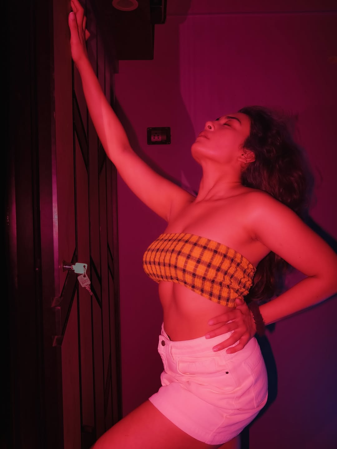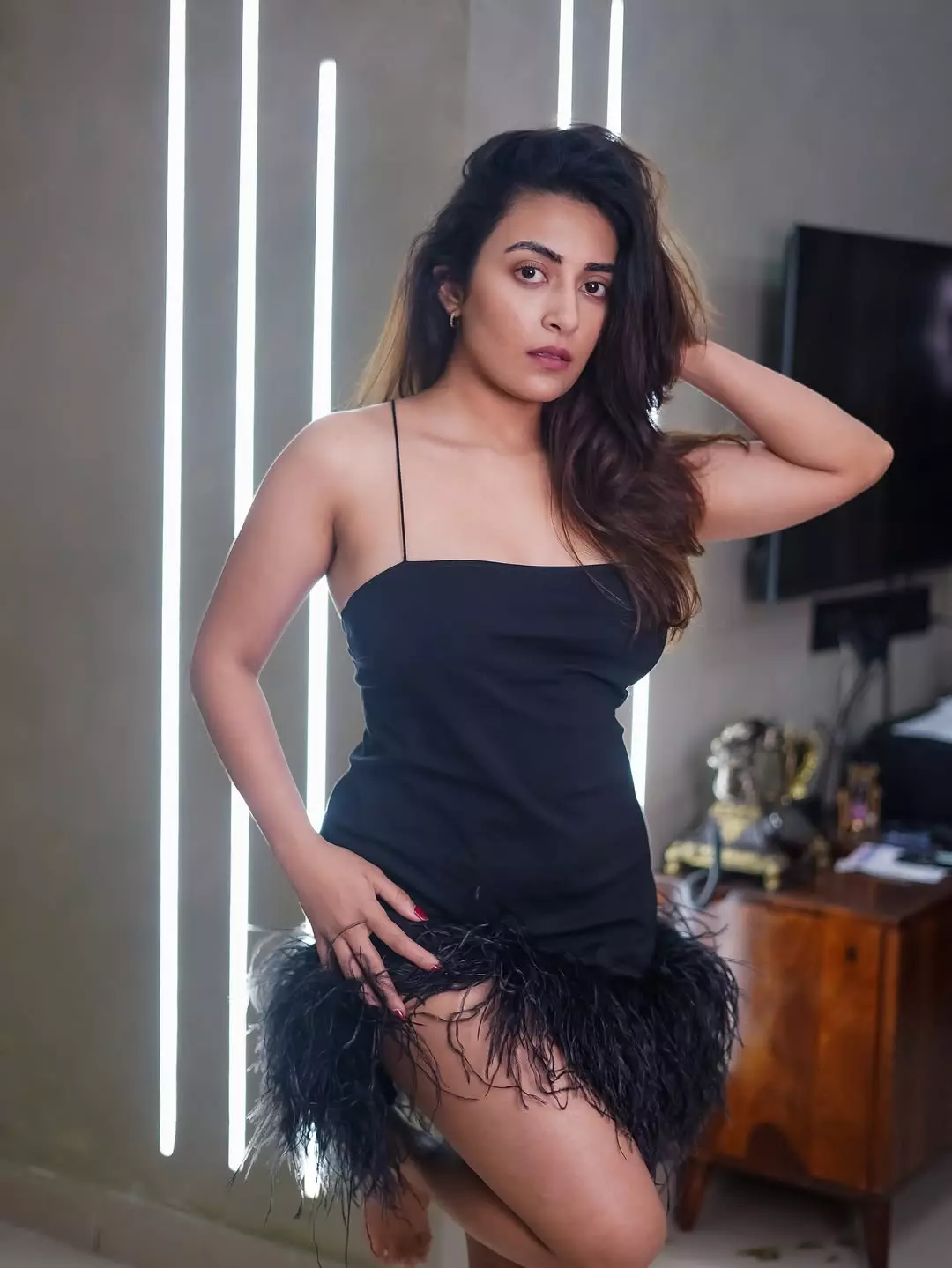 Actress Jinal Joshi once again proves why she is a favorite among fashion photographers with this striking portrait that radiates confidence and effortless charm. Bathed in dramatic lighting, Jinal embraces a bold yet artistic vibe, blending sensuality with sophistication. Her expressive pose and natural aura make the frame feel intimate and unfiltered, perfectly aligning with her caption: “The shirt & I were negotiating; the camera caught us in the act!”