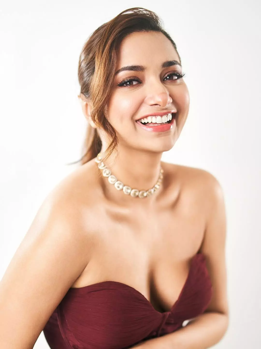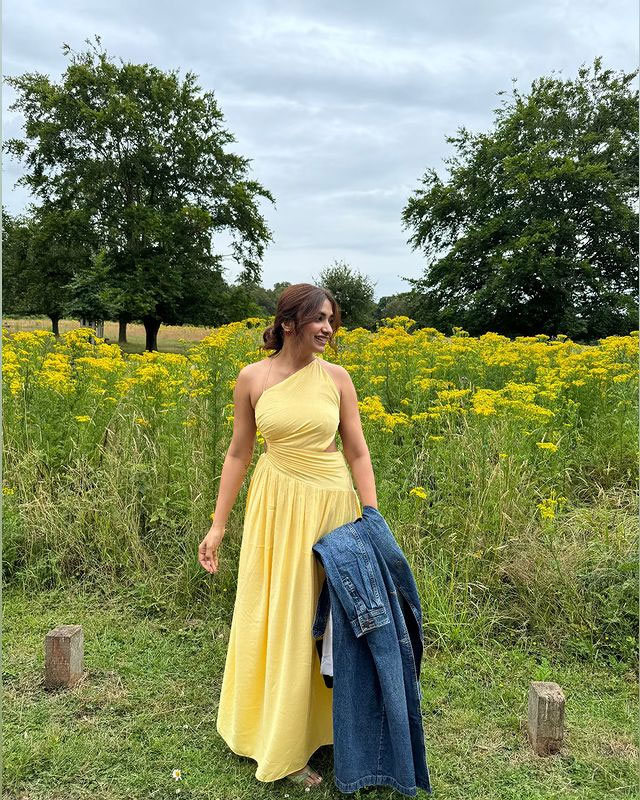 she carries a fresh, cheerful vibe that perfectly reflects her vibrant personality and screen-friendly smile.