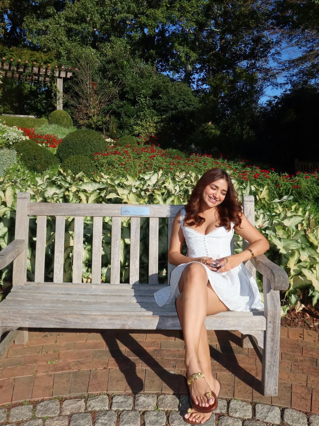 For a touch of evening glamour, she steps into a chocolate-brown slit dress, combining elegance with just the right hint of drama. On the flip side, her casual, beach-ready looks — such as a navy bikini paired with a chic wrap skirt — highlight her effortless vacation-style confidence.