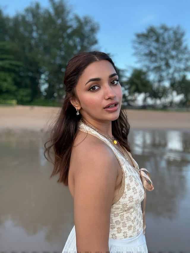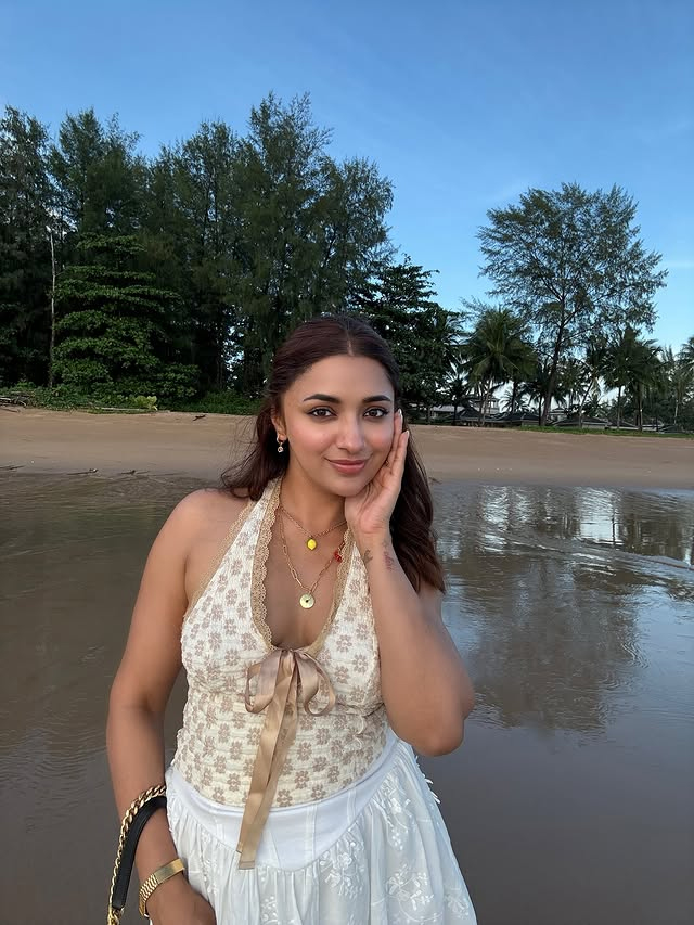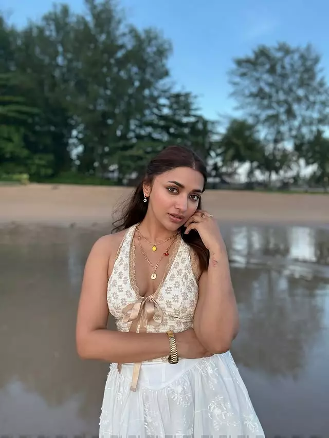 In this beautiful Instagram picture actress Jiya Shankar is seen enjoying her time at the Maya Bay located on Phi Phi Island in Phuket, Thailand. The turquoise waters, white sand and tall limestone cliffs make the place look like a paradise and Jiya fits right in with her bright smile and holiday vibe. She is wearing a light blue sleeveless top with a floral mini skirt and her hair is styled with a cute pink flower clip. Her caption says, Beach dont kill my vibe 🙂‍↔️