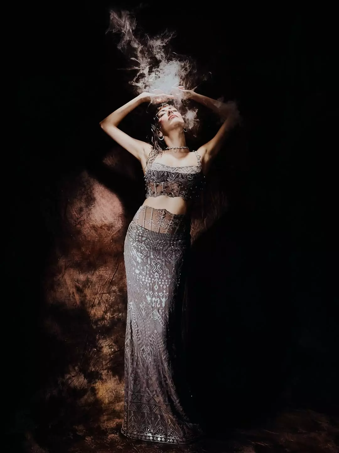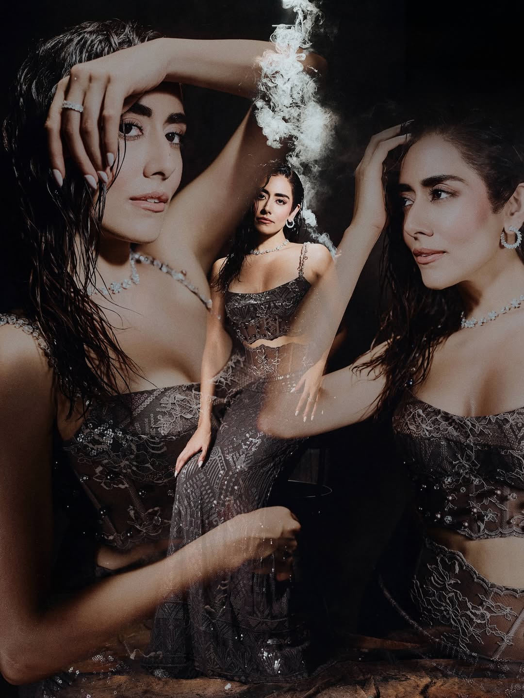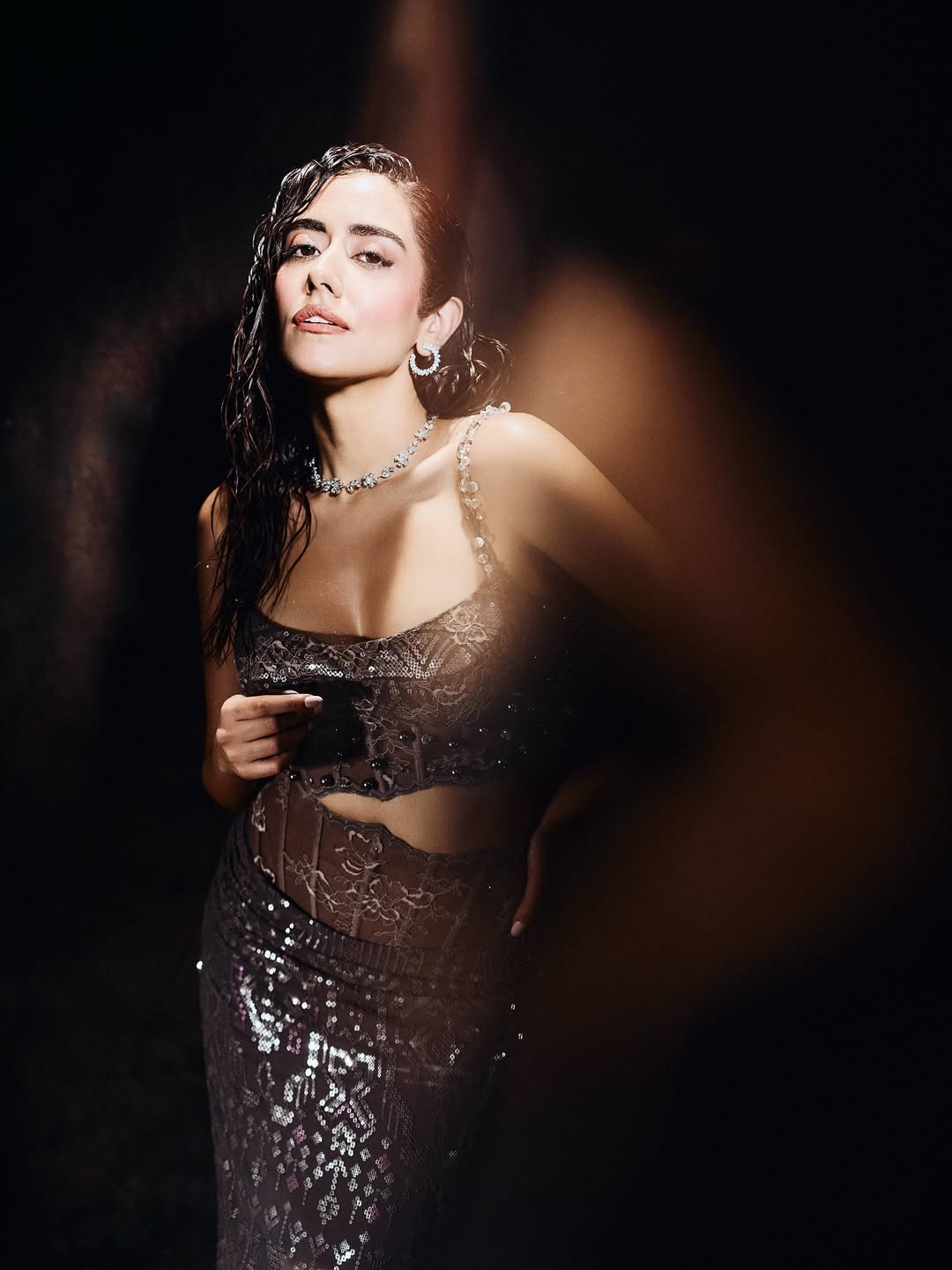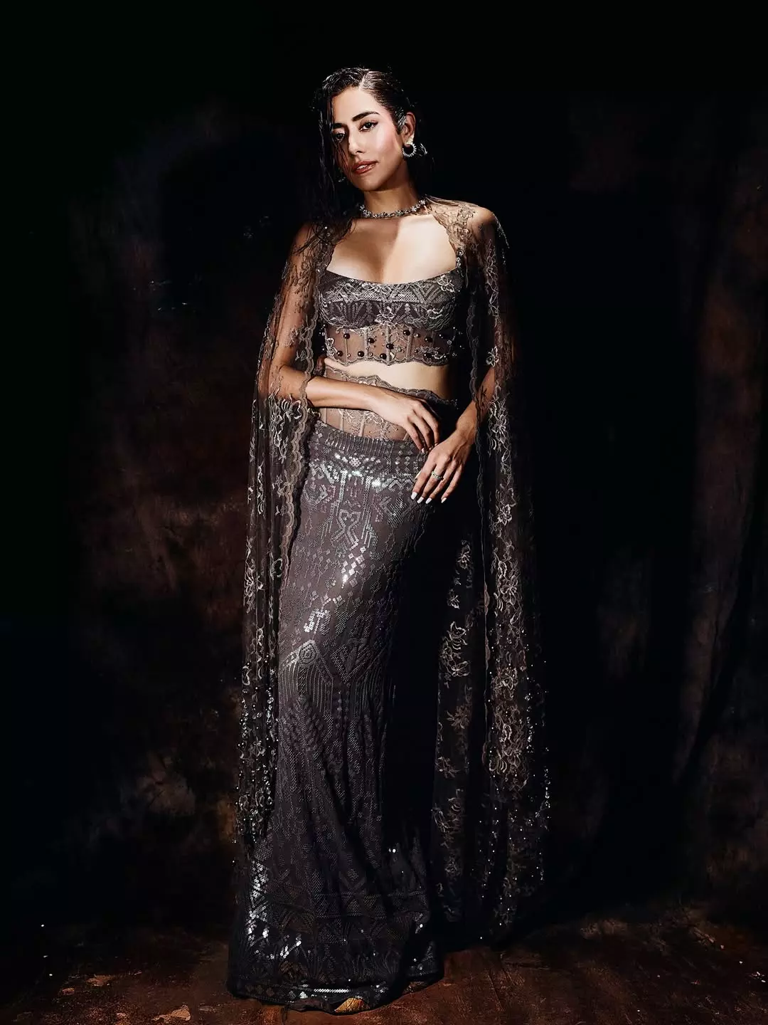 Jonita Gandhi lit up the festive season in the most dazzling way, kicking off Diwali szn in a breathtaking sheer embellished outfit by @manishmalhotraworld. Styled to perfection, her ensemble featured intricate lacework, pearl details, and a figure-hugging silhouette that radiated both grace and glamour. Sharing her look on Instagram, she wrote: