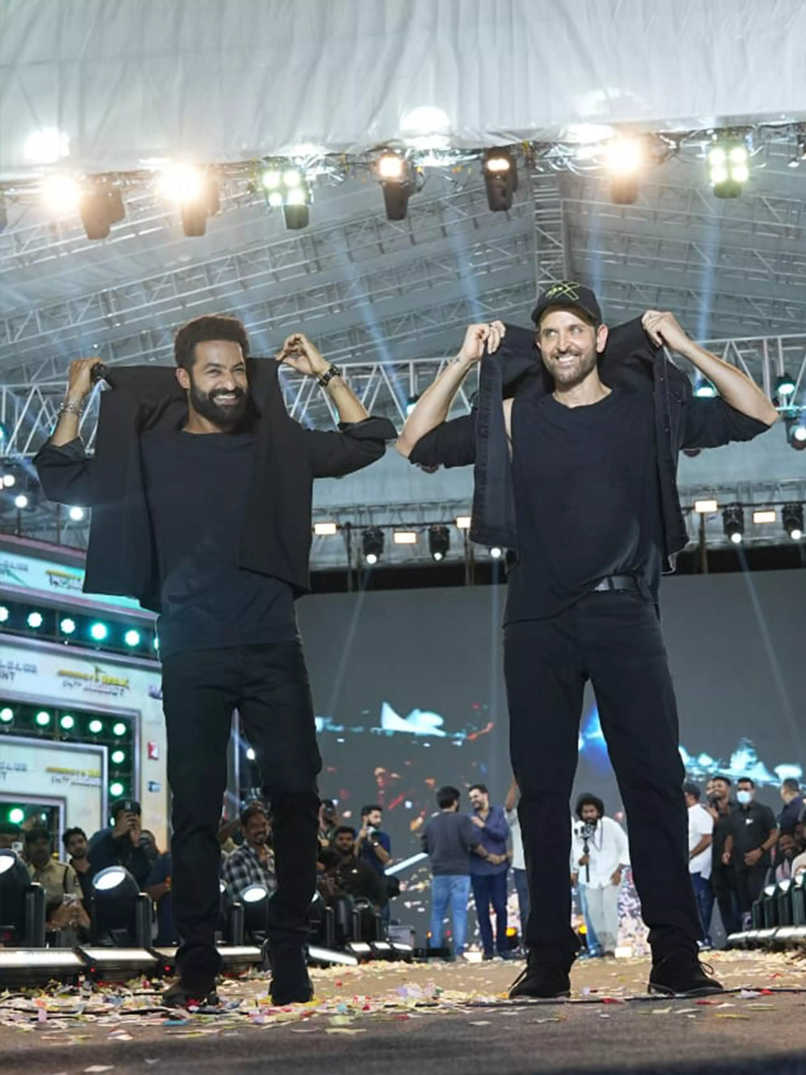 Hrithik spoke highly of Jr NTR�s dedication and work ethic, saying, "I see a lot of myself in Tarak. We have had very similar journeys for 25 years now, and I think Tarak sees a little bit of himself in me as well. It is true when they say that he is a one-take, final-take star. On set, Tarak, I have not just observed you � I have learnt from you. I have learnt how to go into a shot 100% not 99.99%, not 99.999%, but 100%. Which is why when he comes out of a shot, there is no judgement on it. He will not even check the shot because he knows he has given everything to it. And I will apply that in my future films. Tarak thank you for teaching me that.�