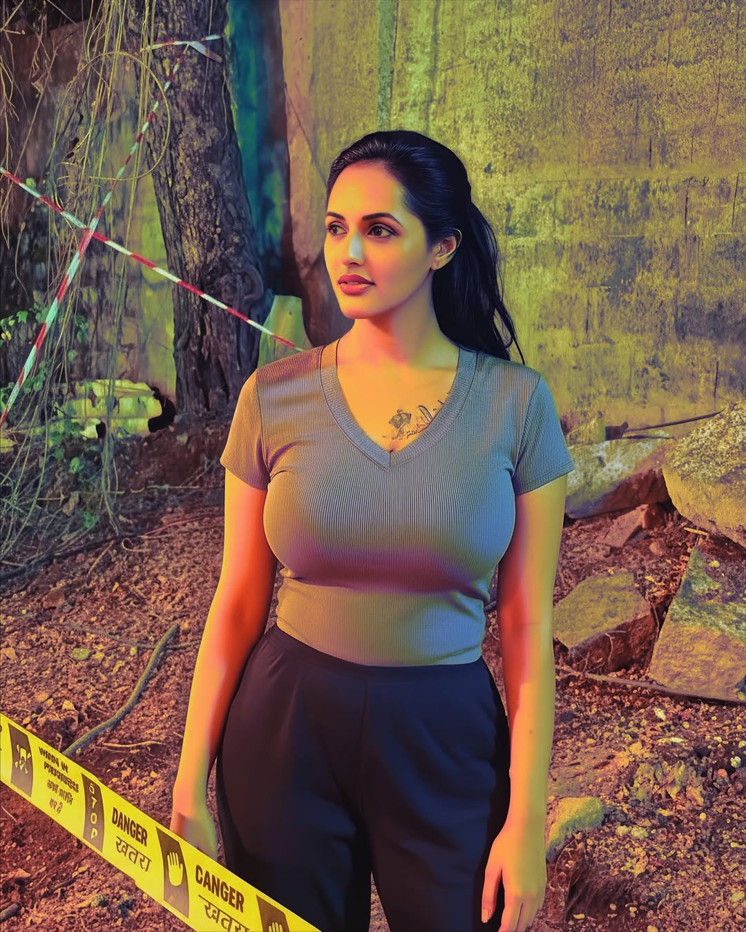 Actress Jyothi Poorvaj who is known for her strong performances in Telugu cinema and television recently shared a new picture on Instagram that caught everyone’s attention. In the photo, she is seen standing confidently near a “danger” zone with crime-scene tape behind her,giving a clear hint that the scene might be from an intense part of her upcoming movie Killer.