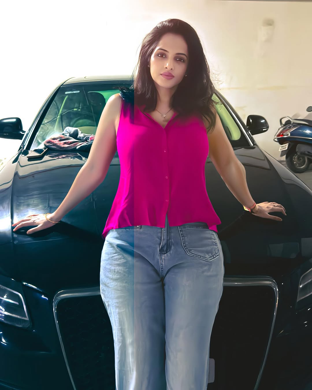By: Tupaki Desk | 26 March 2025 6:58 PM ISTReady to step up your fashion game? Jyothi Poorvaj�s latest look is a reminder that style is all about confidence. Time to take a peek and get inspired! Her latest Instagram post has her easy going style. She wore a bright pink sleeveless top with light blue jeans. The color contrast added to the charm of her look. Her open hair and natural makeup complemented the outfit. She posed confidently in front of a black car. She captioned the post, "Not your regular parking lot mood this one's got attitude."