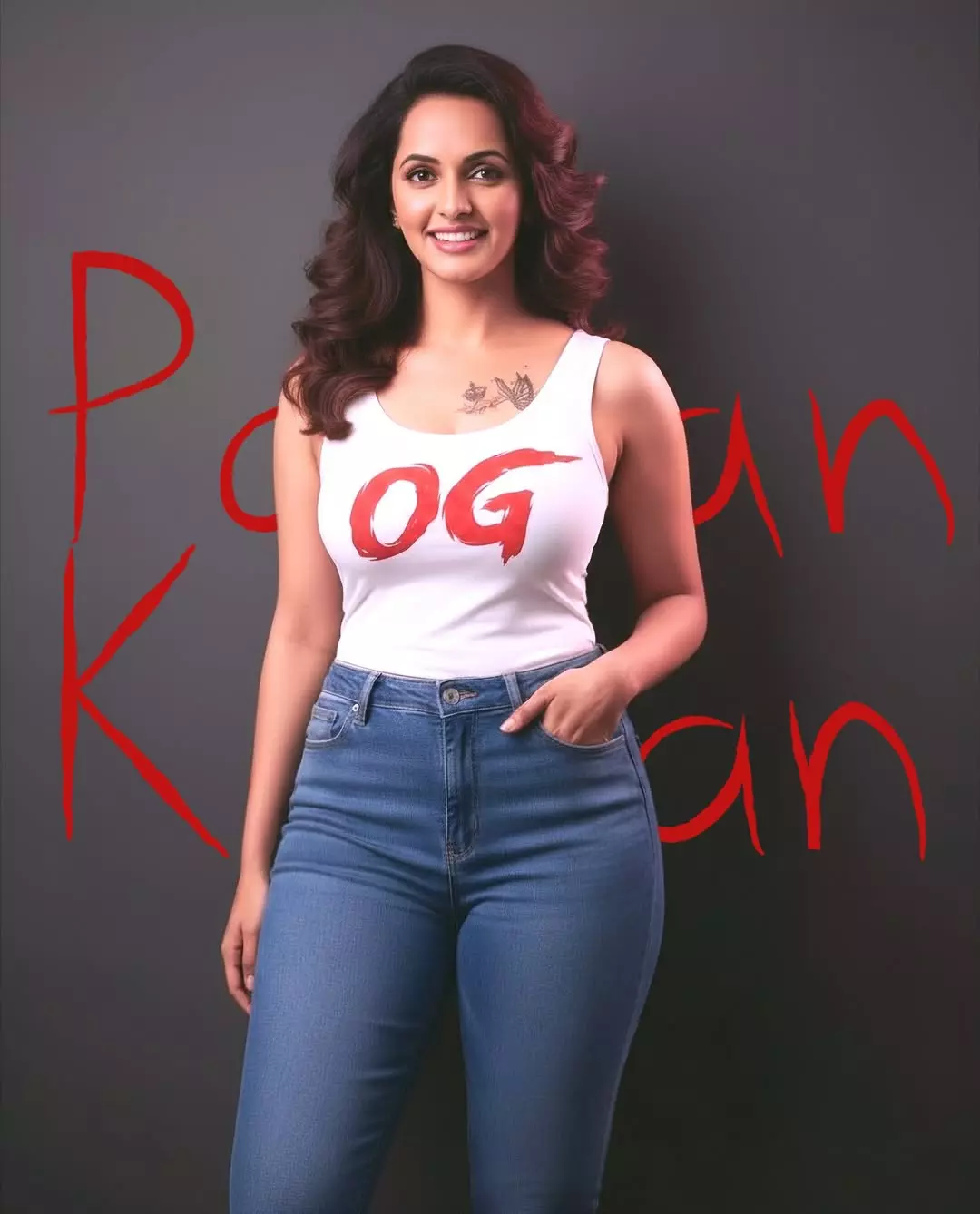 Interestingly, Jyothi Poorvaj wears good and unique dresses which is a mix of modern attires. She recently pulled off and before fans even came out of it, she slipped into a denims Jeans and a maroon-shirt, revealing her glamour.