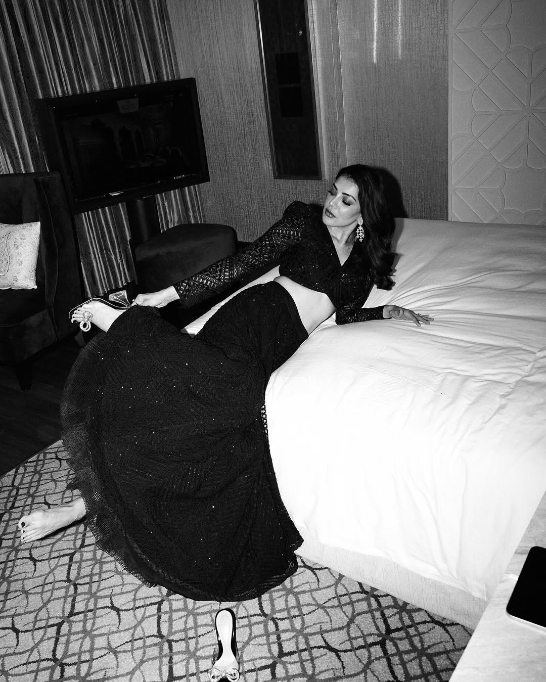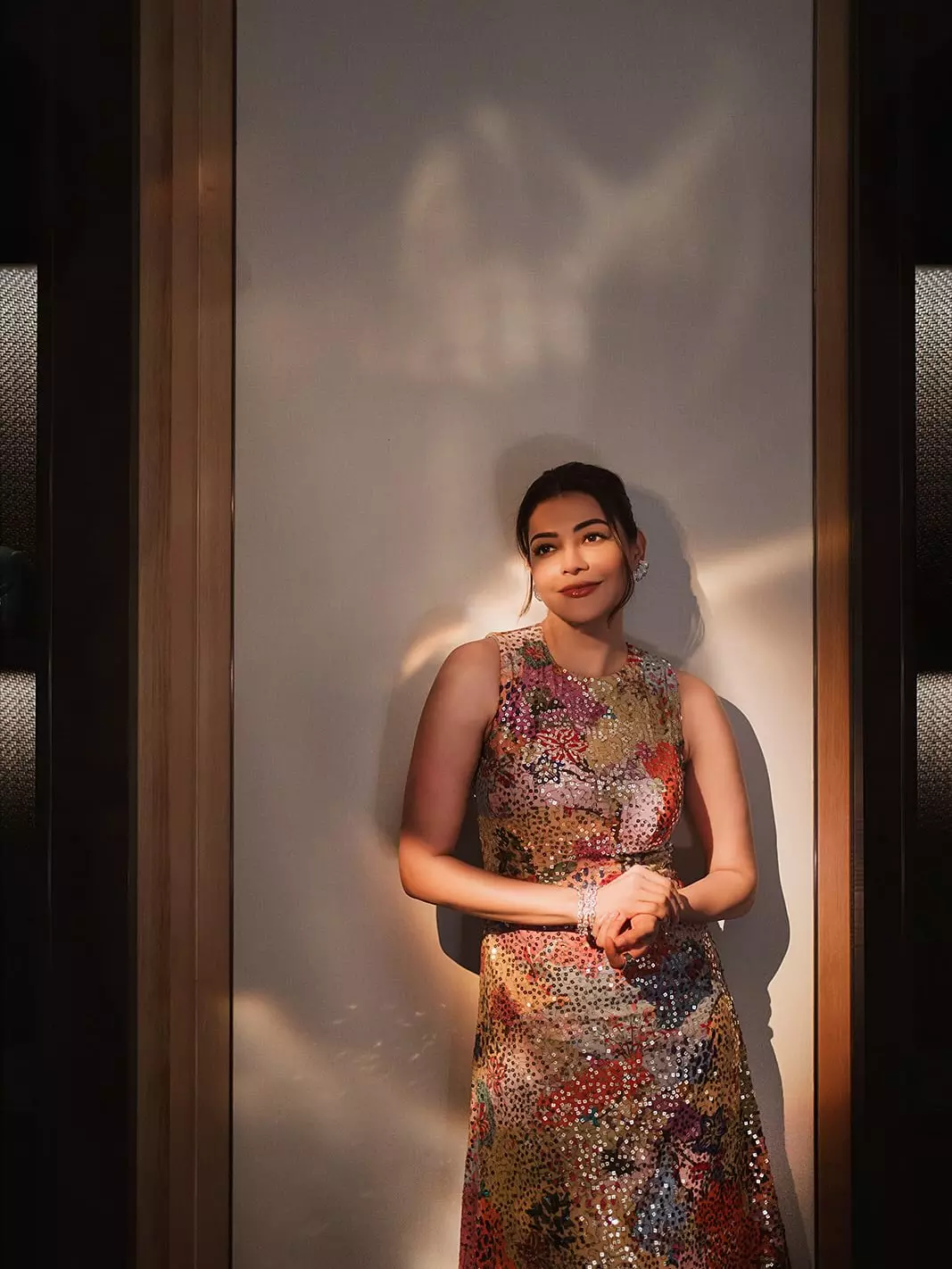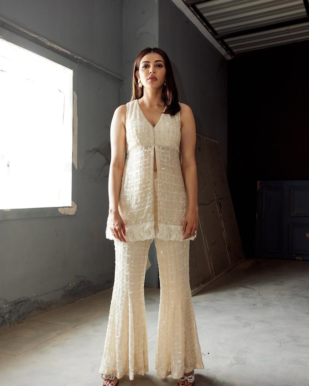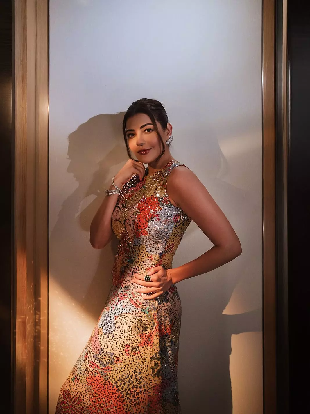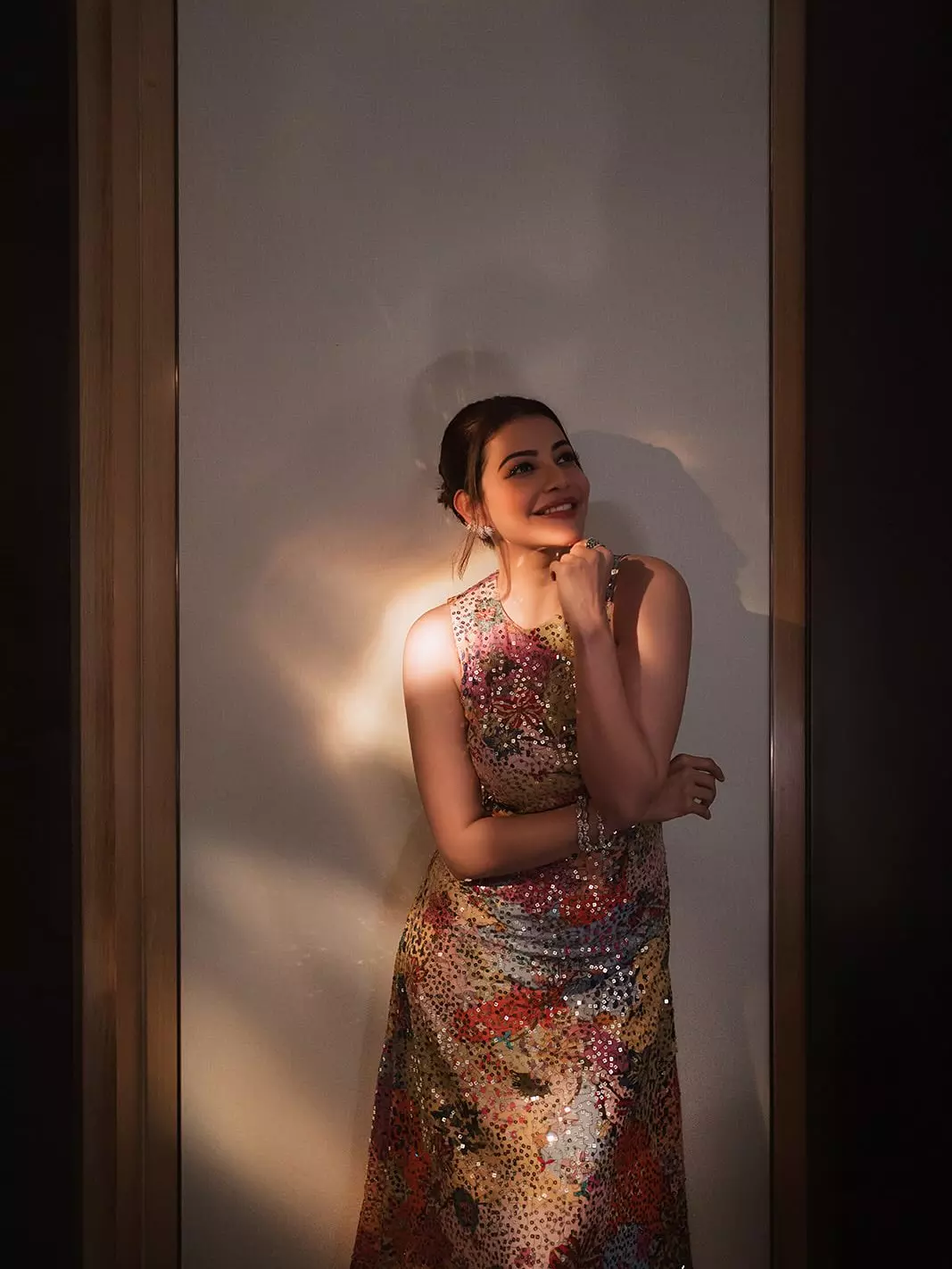 Kajal Aggarwal wrote in her caption, “A little bit of shine, a little bit of shimmer, a dash of dazzle, and a whole lot of glow! Why blend in when you can sparkle louder than the chandelier? 😉 That’s not the disco ball talking, that’s just me, juggling love, life, coffee, and chaos… and still managing to sparkle 😉☀️”