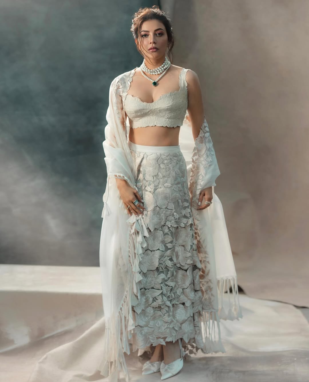 Kajal Aggarwal throws back pictures of herself wearing a beautiful white ghagra is trending again. The dress had delicate embroidery and gave her a royal look.