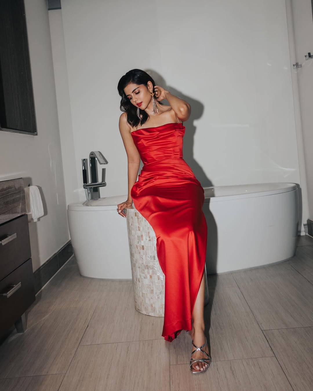 Kalyani Priyadarshan recently captivated audiences with her stunning appearance at The ELLE List 2026 event for @elleindia, where she turned heads in a sleek black satin gown featuring a thigh-high slit, draped neckline, and sparkling embellishments. The look, exuding elegance and sensuality , perfectly highlighted her graceful silhouette and confident style, earning widespread praise as a bold yet classy statement.
