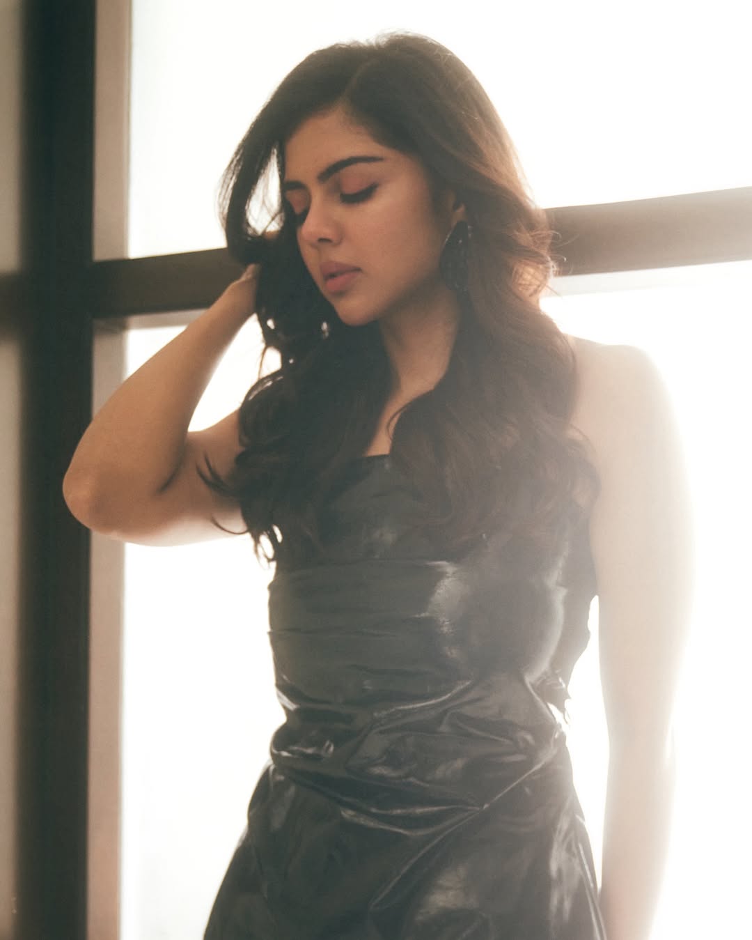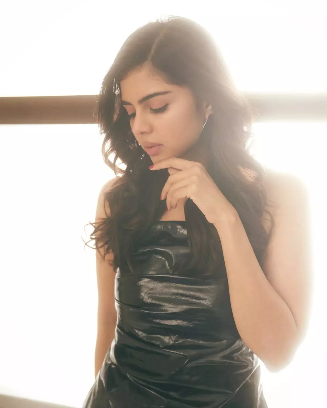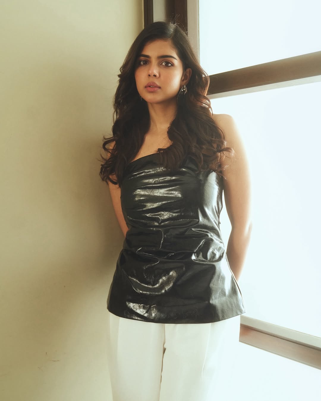 Kalyani Priyadarshan is not just creating waves with Lokah but also with her latest snaps She looked relaxed and natural in the frame. In the picture, Kalyani wore a black leather top paired with white pants. Her hair was styled in soft curls. She posed near a window with a confident look.