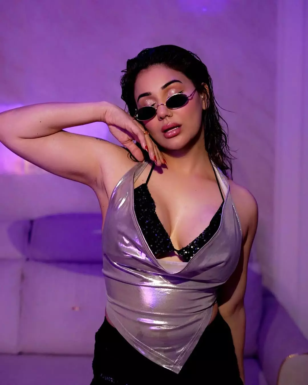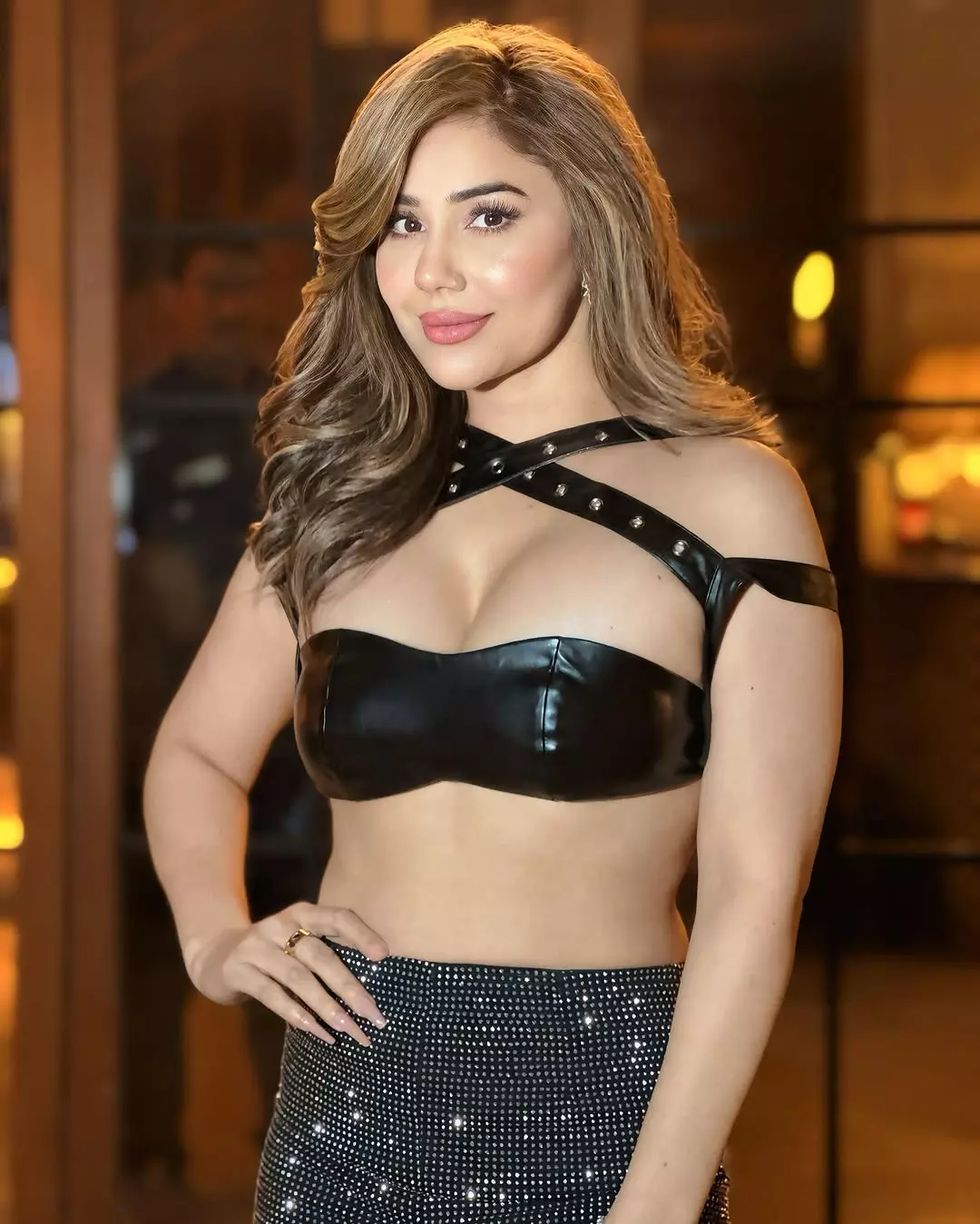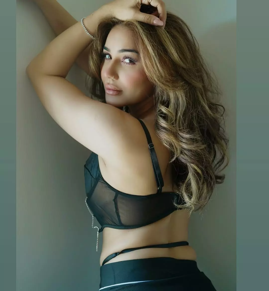 Kangana Sharma has once again captivated attention with her stunning appearance, this time donning a striking black ensemble that perfectly showcases her bold personality. Renowned for her captivating beauty and magnetic presence, Kangana effortlessly proves that simplicity can be the ultimate sophistication.