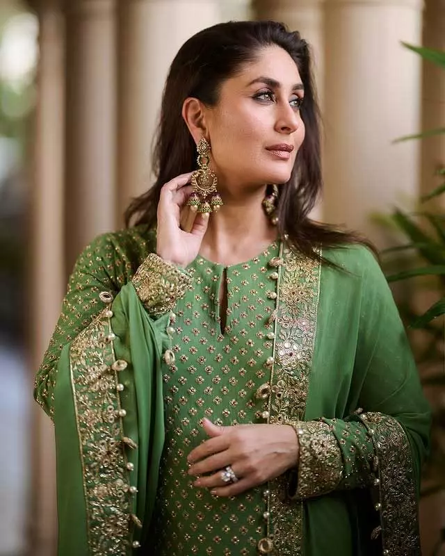 In these photos Kareena wore a stunning Green Dupata. She paired it with accessories like a ring, earrings, and bracelet. Her makeup was glamorous with a nude lipstick. Fans flooded the comments section with love and compliments, some calling her a "hottie" and leaving fire emojis.