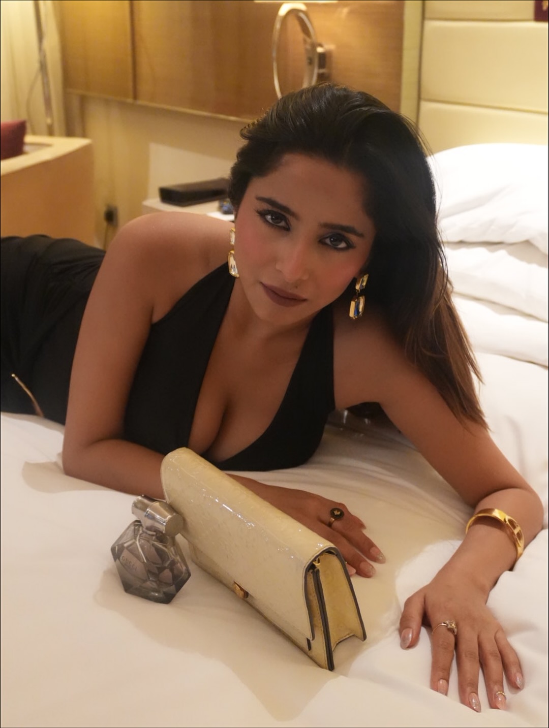 By: Tupaki Desk | 8 Nov 2025 6:54 PM ISTIn a mesmerizing display of sultry elegance, Kate Sharma captivates in her latest Instagram photoshoot, channeling the fiery spirit of Bridgerton's unapologetic heroine with a modern twist. Posed against a sleek backdrop that blends vintage charm and contemporary edge, she exudes confidence in a form-fitting ensemble that highlights her poised silhouette, her enigmatic gaze drawing viewers into a world of quiet intensity and bold allure. The image, a testament to her evolving style, is perfectly accessorized with the luxurious "Lights, Camera & Me" perfume from Gucci—its floral notes evoking whispered secrets and midnight rendezvous—and a chic, structured bag from Tory Burch, adding that effortless touch of high-end sophistication. As Kate celebrates her milestone of 3 million followers, this portrait not only thanks her devoted fans but reaffirms her status as a fashion icon who seamlessly bridges Regency romance with today's red-carpet glamour.