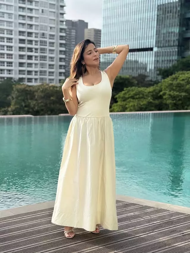 By: Tupaki Desk | 27 Jun 2025 9:54 AM ISTActress Kate Sharma turned up the heat in a simple yet striking ivory ensemble that defined minimalistic glam. Dressed in a sleeveless ribbed tank top paired with a flowing skirt, Kate embraced the golden hour glow with effortless poise. The soft fabric and neutral tone enhanced her natural beauty, while the figure-hugging fit added just the right hint of allure.