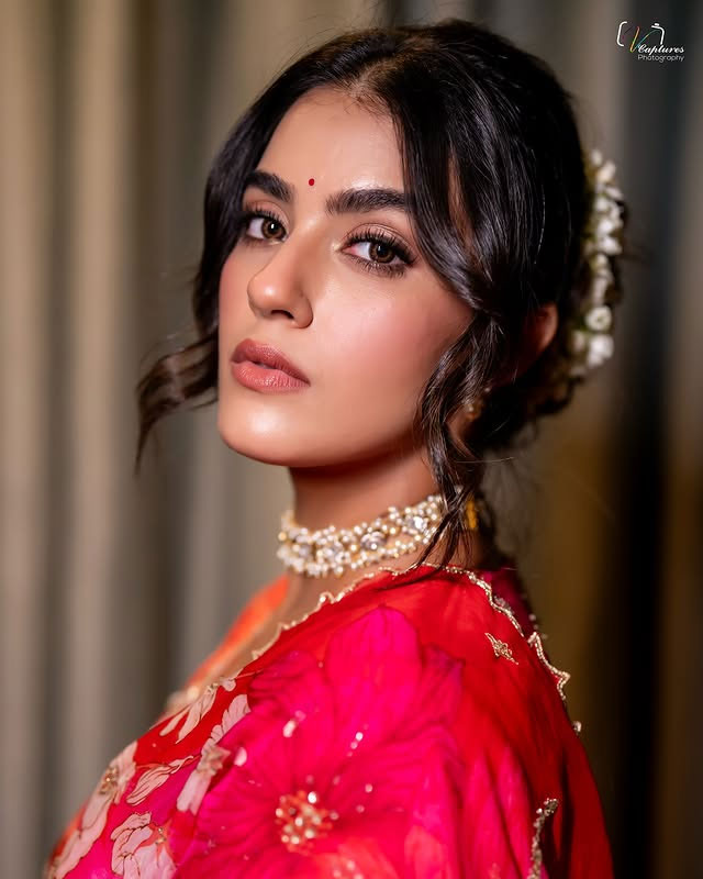 Draped in a stunning saree by Issa Designer Studio, Kavya completed the look with elegant jewelry from Ekadhi Jewels. Her soft glam makeup and voluminous waves were styled by Sandy Pro, while the entire look was curated by Priyanka Sahajananda. The striking photograph, shot by @i_ak_photographer, was part of a collaboration with Umedia Entertainments and Kalyan Sunkara.