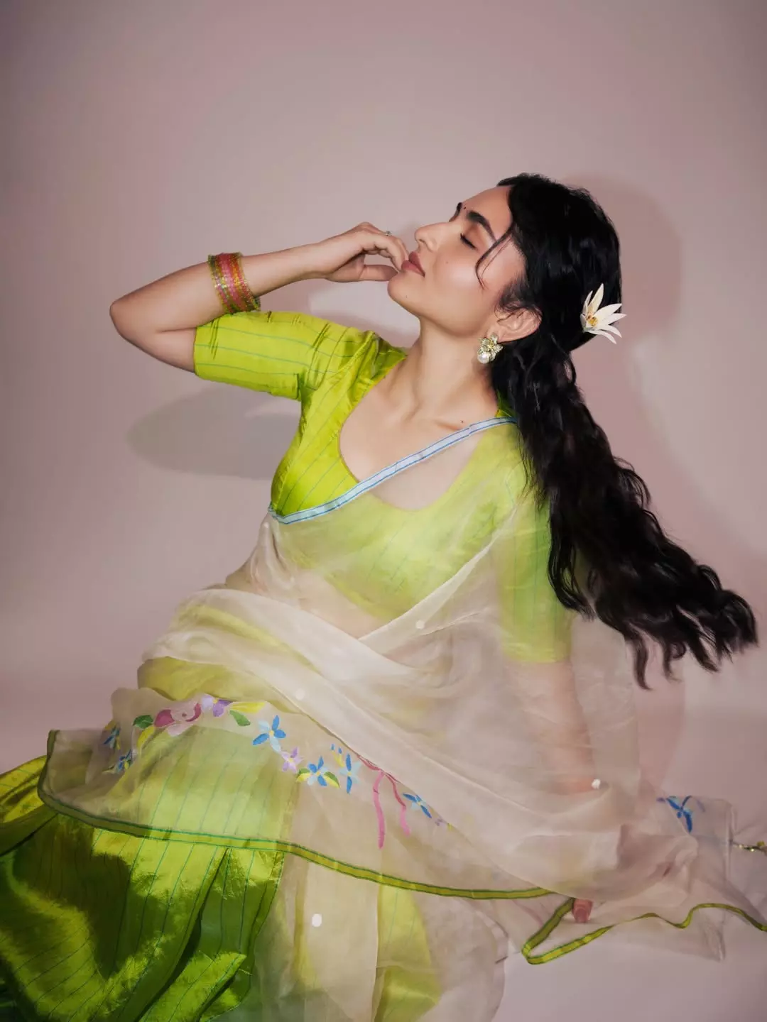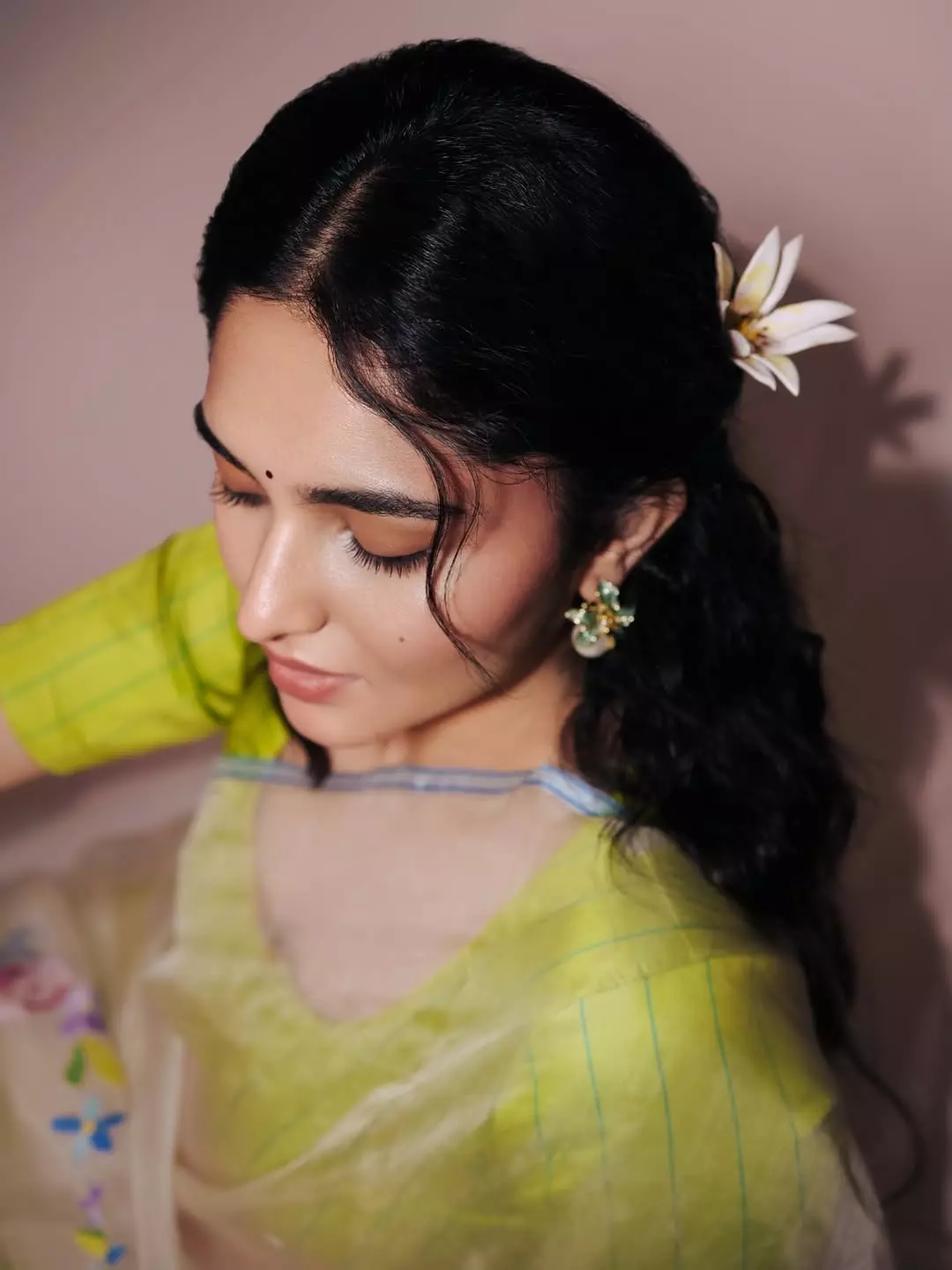 Her look is beautifully enhanced with exquisite jewellery from @tribebyamrapali via @amethystchennai and @elsolstrategicconsultants, adding a regal touch to her overall appearance. Styled to perfection by @hqrukmini, every element of her ensemble reflects a blend of sophistication and youthful vibrance. The flawless makeup by @pavitra_j_rukmani_makeup highlights her natural beauty, while the elegant hairstyle by @hair_by_aiswaryaraj perfectly complements the traditional vibe.