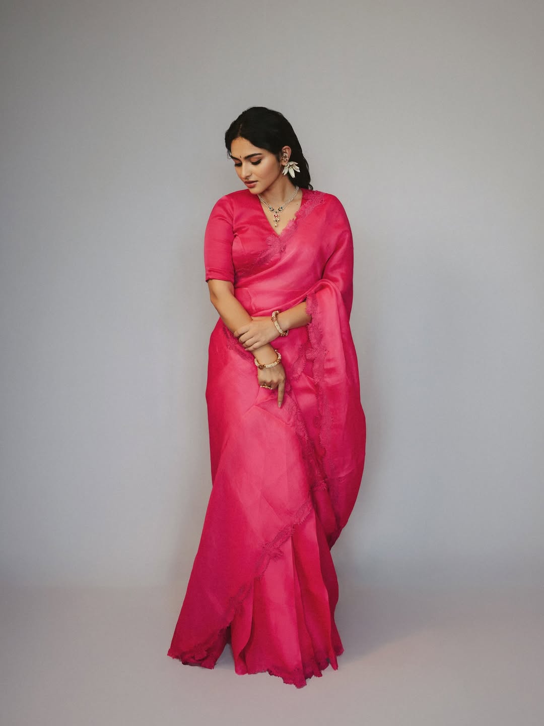 Rising star Kayadu Lohar is quickly becoming a favorite among fashion lovers and cinema fans alike. Known for her effortless charm and striking screen presence, the actress once again grabbed attention with her latest traditional photoshoot. Draped in an elegant outfit by @swathiveldandi_official, Kayadu radiates grace and poise, proving that she can ace both glamour and ethnic looks with ease.