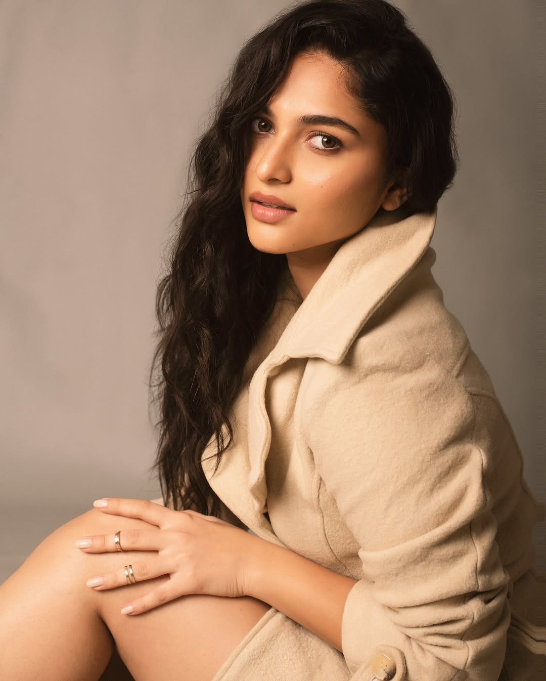 Kayadu Lohar brings a refreshing blend of innocence and quiet confidence to this elegant portrait. With soft curls framing her face and minimal makeup enhancing her natural features, Kayadu’s look feels intimate, warm, and effortlessly graceful. Her gentle gaze and relaxed posture create a sense of closeness, drawing the viewer into a calm, reflective moment.