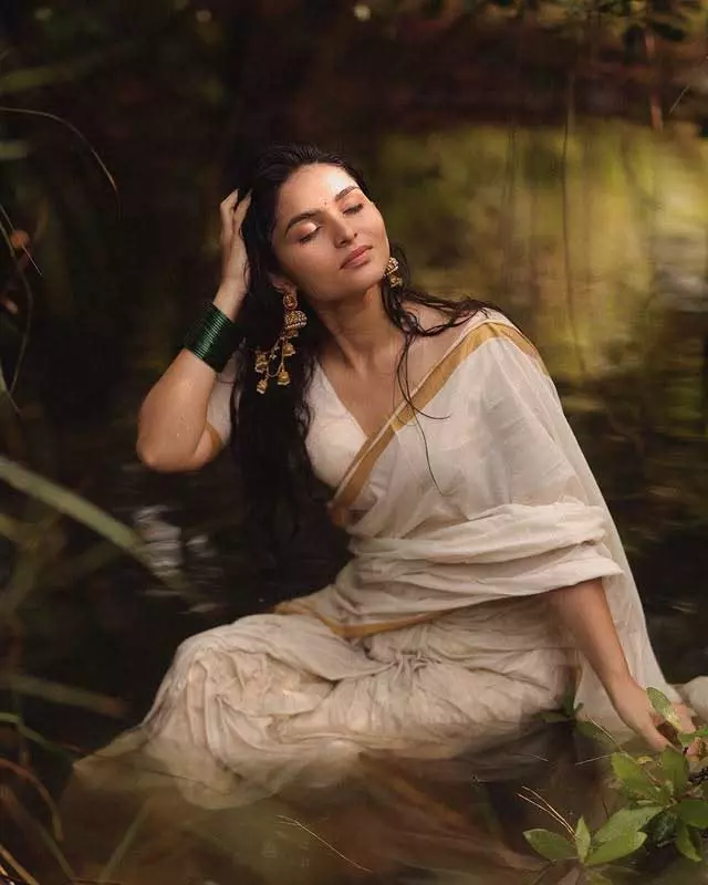 In a recent Instagram post dated October 14, 2024, actress Kayadu Lohar mesmerized fans with her serene and graceful look. Styled by @harshikaa.04 and captured by @haran-_official-_, Kayadu posed in a white and gold Kerala saree while immersed in nature. The caption —“🤍🦢” perfectly complemented the elegance like a swan gliding in water.