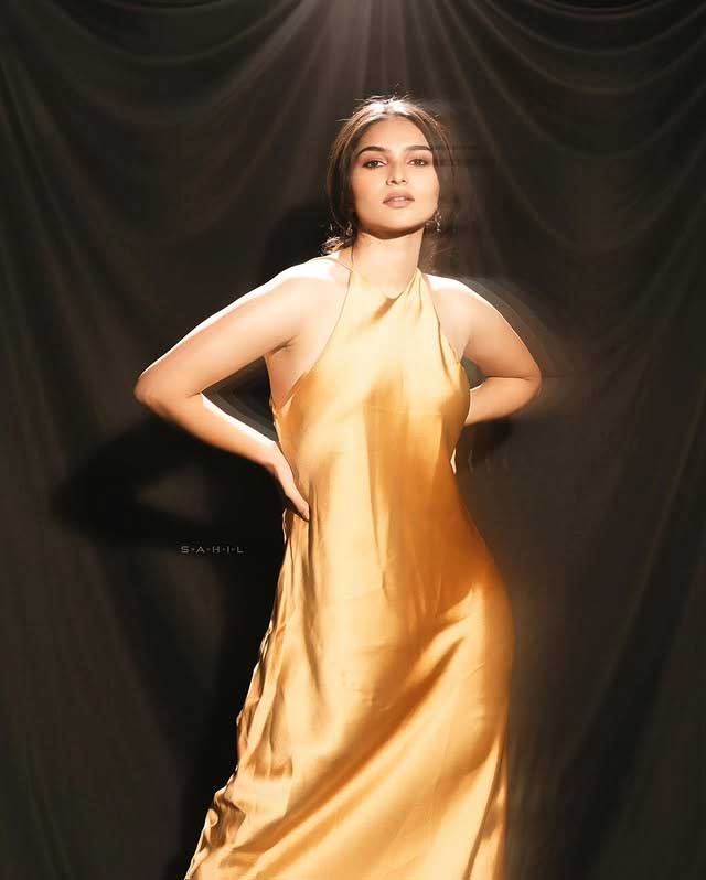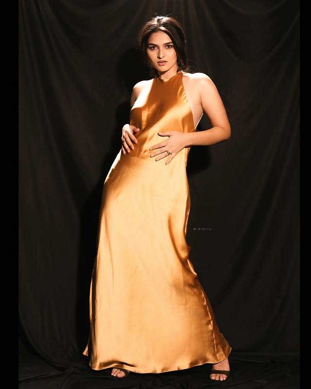 Kayadu Lohar took to Instagram with a striking new photo where she’s seen dressed in a sparkly beige co-ord set paired with soft glam makeup and loose wavy hair. In this click, she poses against a velvet brown backdrop giving the camera a confident and subtle expression.