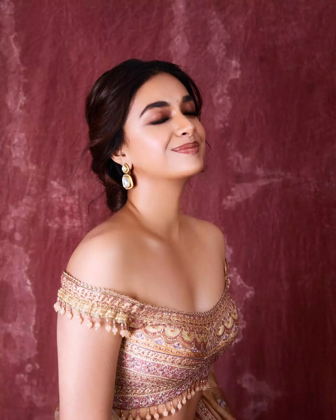 Interestingly, this is the same saree that Keerthy wore a few days back in a fun Instagram reel. In that reel, she was seen dancing to the popular song "Janma Janmala Bandham" from the film Subham which is produced by Samantha Ruth Prabhu. The reel received a lot of love especially because Keerthy nailed the hook step.
